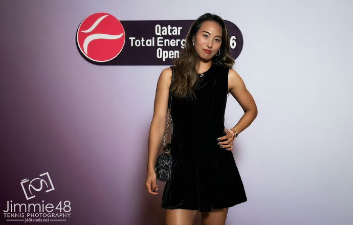 郑钦文出席多哈站球员晚宴,身着黑裙惊艳亮相