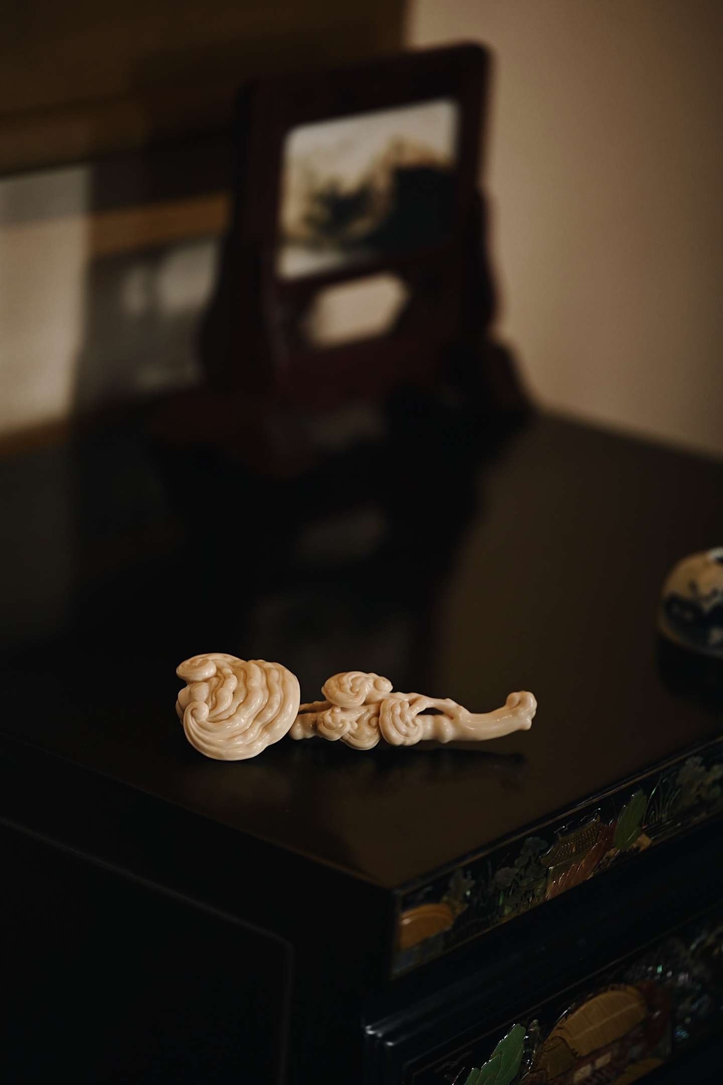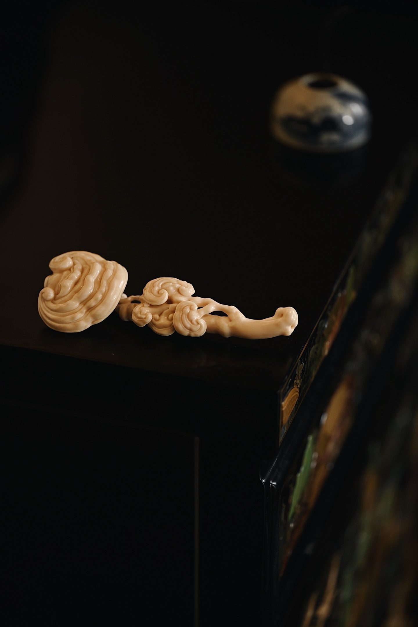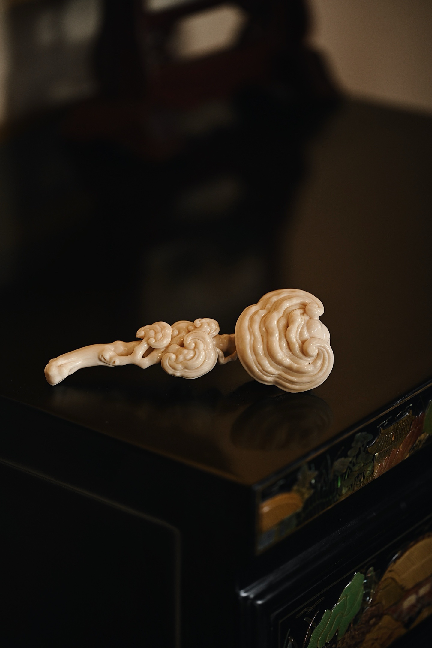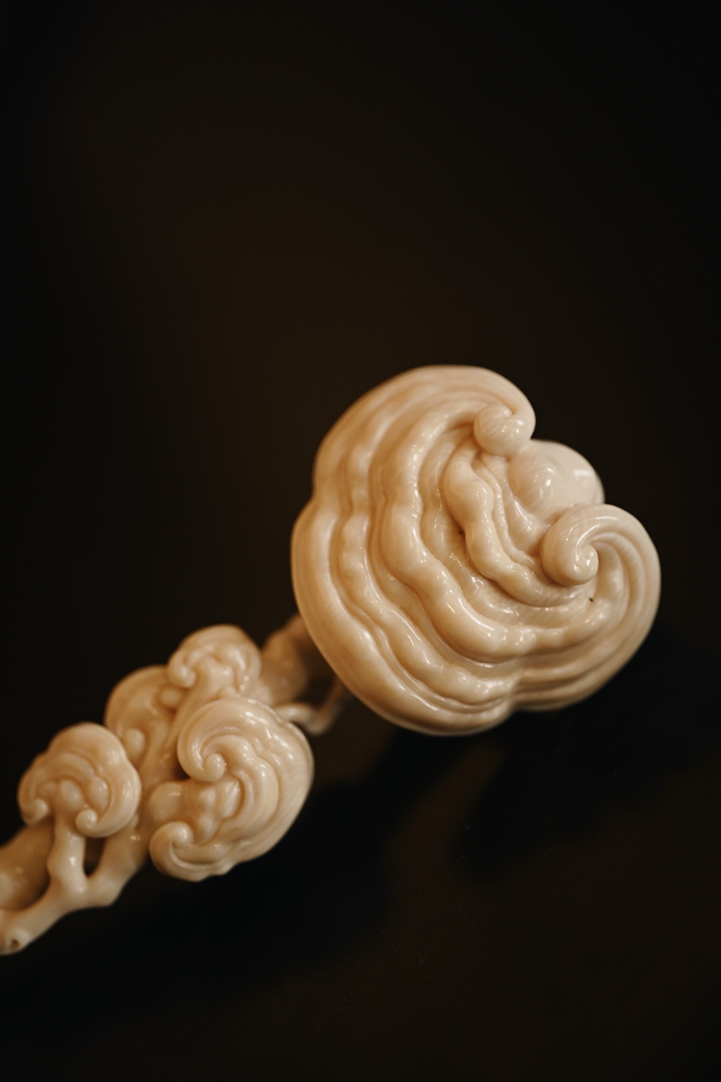 料质细腻,雕刻灵芝层叠而发,随形附势,生动逼真,置茶席、书案把玩陈设,极具天然之趣。