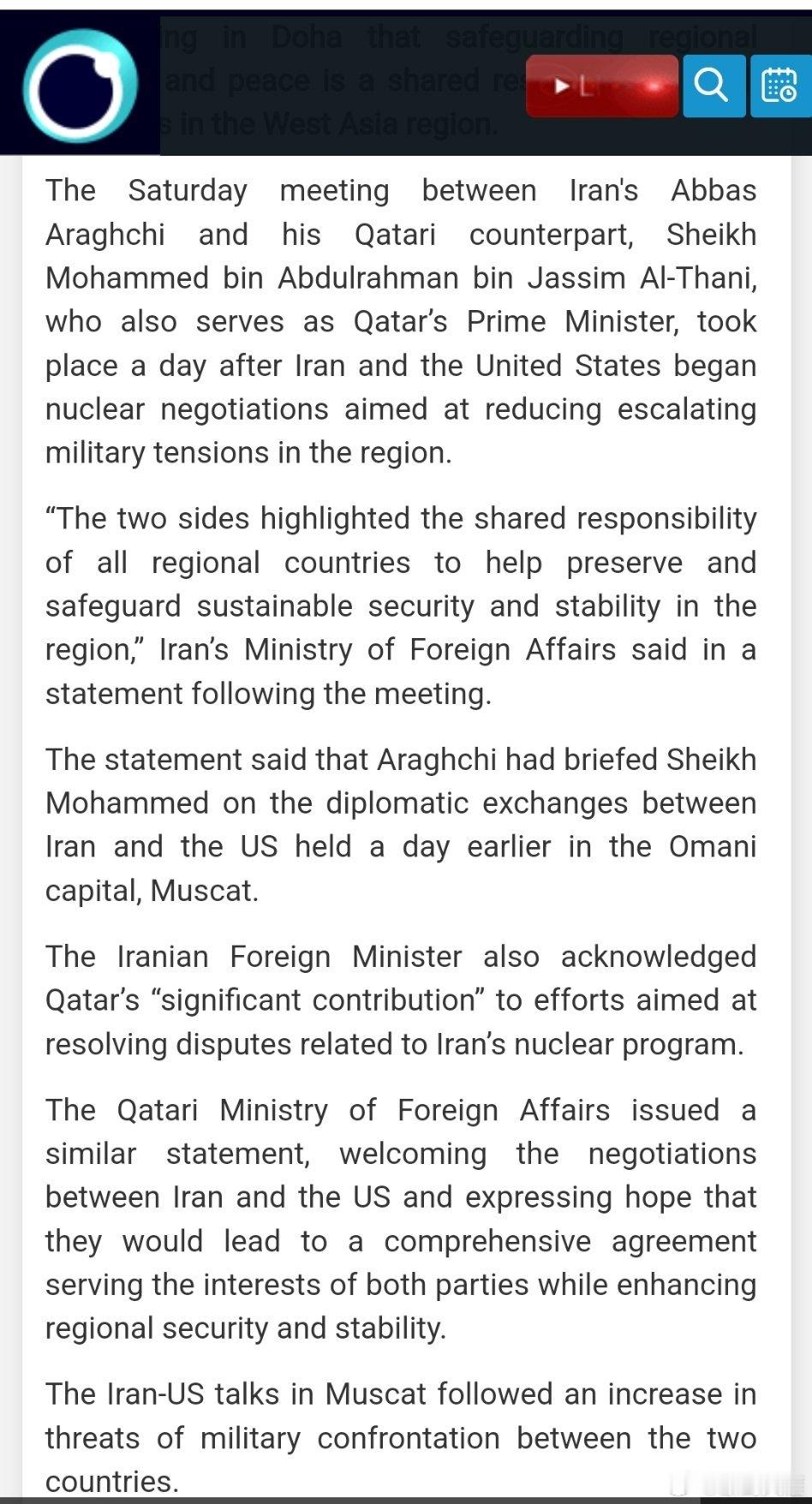 伊朗和卡塔尔表示维护地区和平是共同责任
