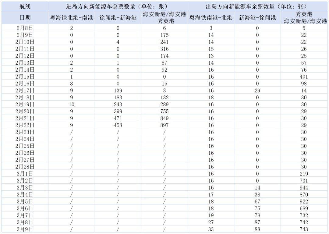 二、春运期间琼州海峡客滚运输船票预售情况