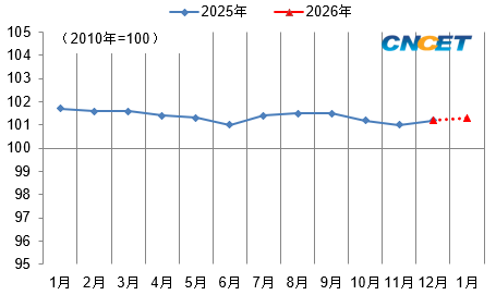 2025年12月份,我国化工行业综合景气指数值终值为101.2,与11月份相比上涨0.2个百分点;构成化工行业景气指数的价格、利润、投资和生产4个分指数与11月相比:价格和生产分指数上涨,利润和投资分指数下降。