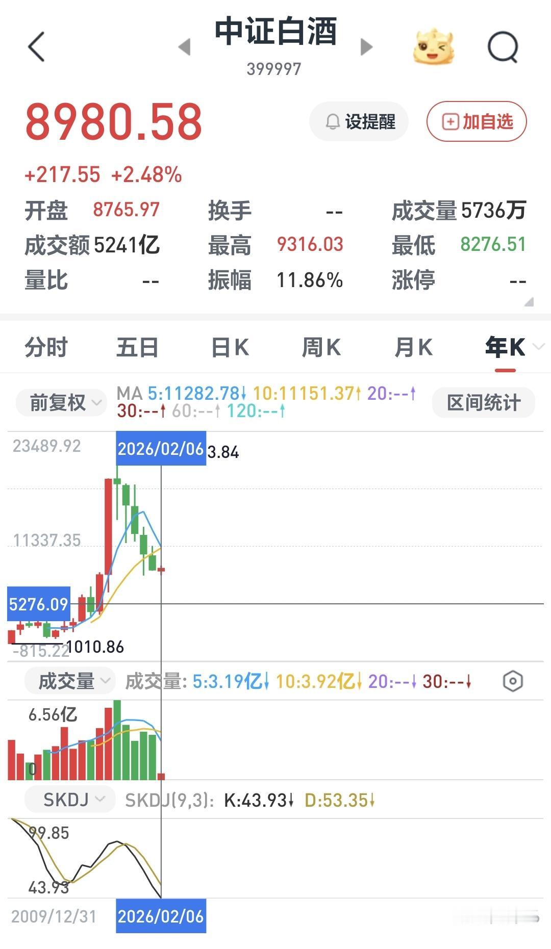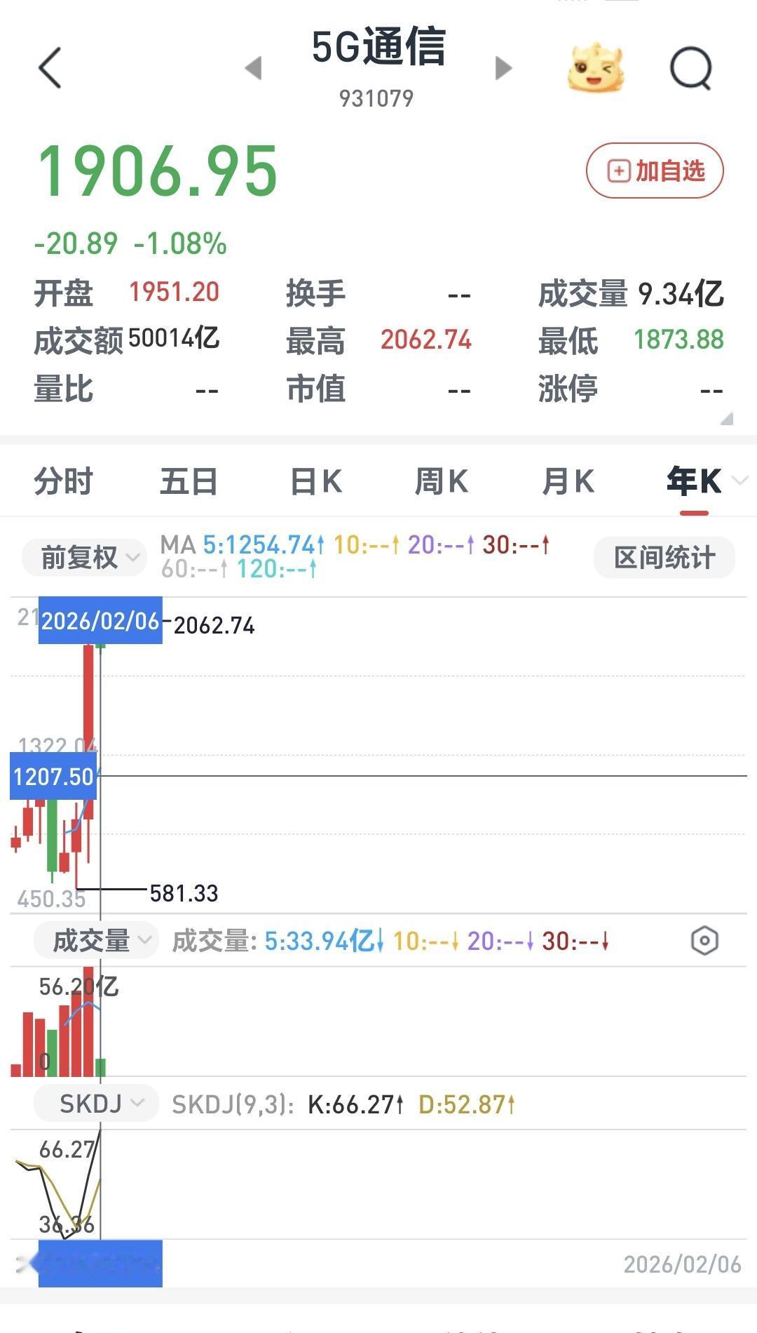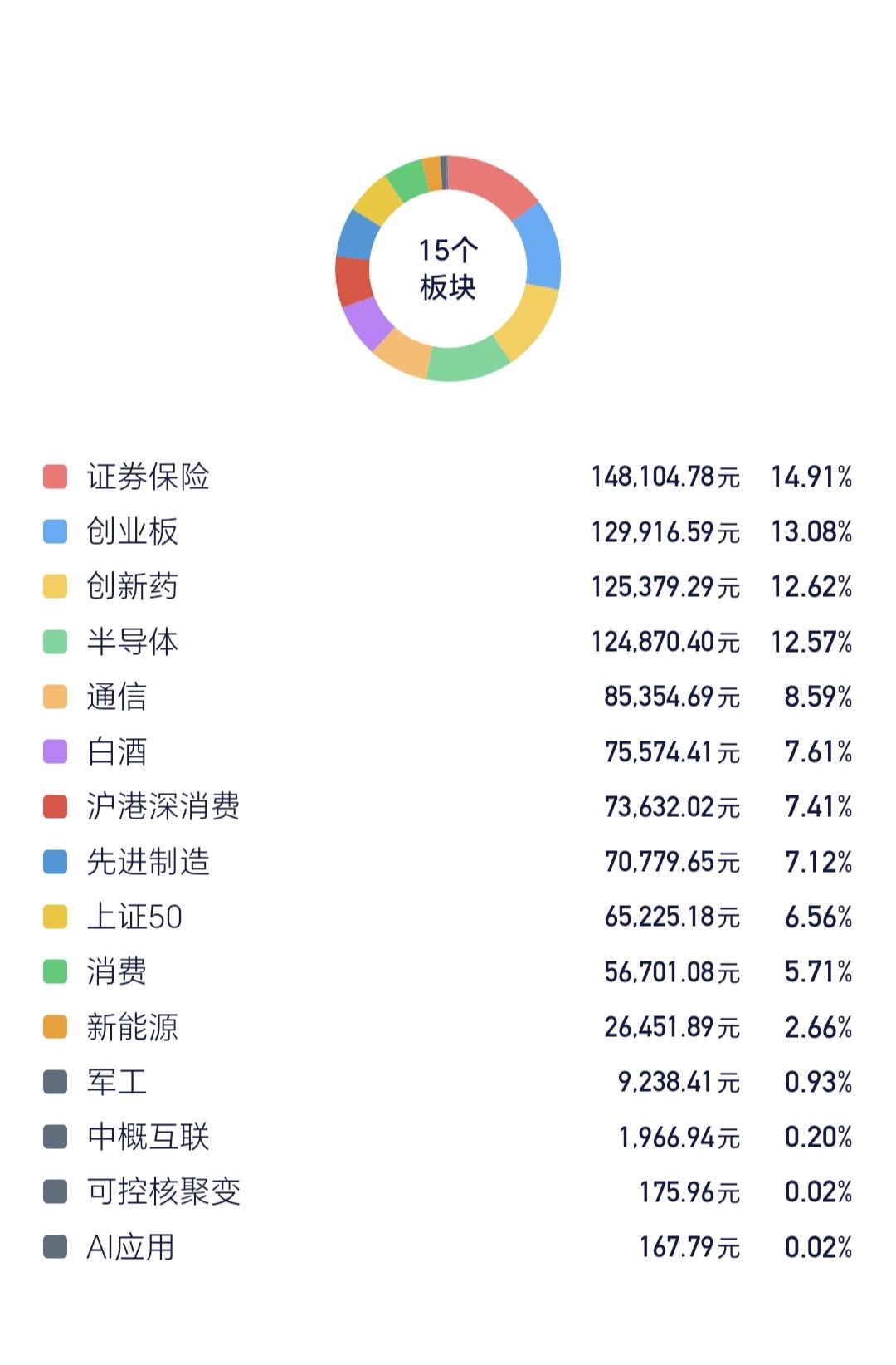 基金:星期一高开高走的可能性大不大 持有的基金收益14653元,收益率1.49%,跑输了上证指数2.43%的上涨幅度,今年以来,亏损的基民6%,盈利的基民94%,我的收益率只跑赢了24%的人。 这个数据与支某宝里面的数据不一样,这里的数据只是作为一个参考,我主要看支某宝里面的数据,我认为那里的数据会更准确一些,统计数据的不一样,是因为统计的基数不一样,这里许多人是模拟盘,造成了盈利人数比例的增加。 持有的15只基金中,今年以来盈利的有8只,盈利金额最大的三个板块是:芯片半导体板块,先进制造板块,沪港深消费,亏损金额最大的三个板块是:证券板块,创新药板块,5G板块,见下面的截图3和4。 持有的15只基金中,单只基金占比最高的三个板块是:证券板块,创业板指创新药板块,单只基金占比最低的三个板块是:AI应用板块可控核聚变板块,中概互联网板块,见下面的截图5。 白酒板块在连续下跌5年以后,今年以来是上涨的,到上周五为止上涨了2.48%,超过了上证指数2.43%的上涨幅度,见下面的截图6。 5G通信板块去年大涨,今年以来是下跌,下跌了1.08%,跑输了上证指数2.43%的上涨幅度,见下面的截图7。 看下面的截图8,这是5G通信板块周K线图,现在的位置处于这个上涨通道内,距离上涨通道的下轨线比较近,近期观察是跌破这个上涨通道的下轨线,还是在这里企稳反弹。 外围市场大涨,明天我们高开的可能性很大,高开以后主要观察成交量能不能放大,如果成交量能够有效放大,高开高走,或者是高开以后横盘震荡,都是有可能的,如果成交量不能有效跟进,冲高回落就是大概率事件,如果高开幅度够大,高开回落的可能性就会增加,我认为明天会大概率冲高回落,高开高走的可能性不大,因为,这是春节之前的最后一个交易周,许多资金都已经休息,或者是在观望,他们这个时候大幅度进场的可能性不大,没有资金大幅度进场,要想高开高走难度是非常大的。