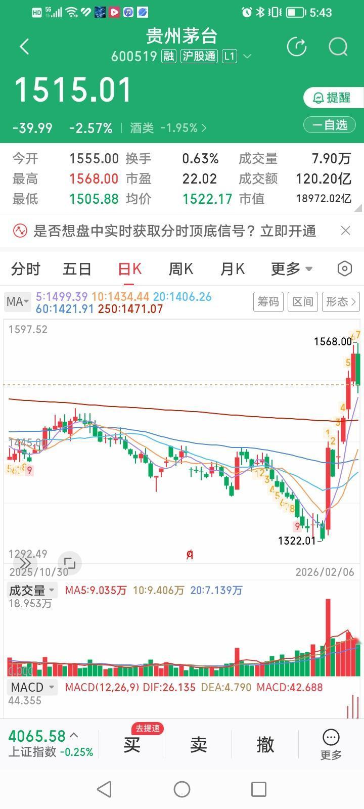 贵州茅台2026年归母净利润能突破千亿元吗? 贵州茅台2024年净利润862.3亿元,2025年三季报净利润646.3亿,如果保守估计按同比增长5%计算,2025年净利润可能在900亿左右。 看目前线上i茅台一瓶难求,线下经销商已经申请三月份配额的情况,2026年茅台酒销售量价齐升已成定局,如果按12%—15%的增长率计算,2026年茅台净利润超千亿可能性还是挺大的。 如果按1000亿净利润计算,目前贵州茅台动态市盈率大概在19倍左右。 如果贵州茅台2026年净利润能首次突破千亿大关,颇具有标志性意义。说明茅台依然能跑赢通胀。