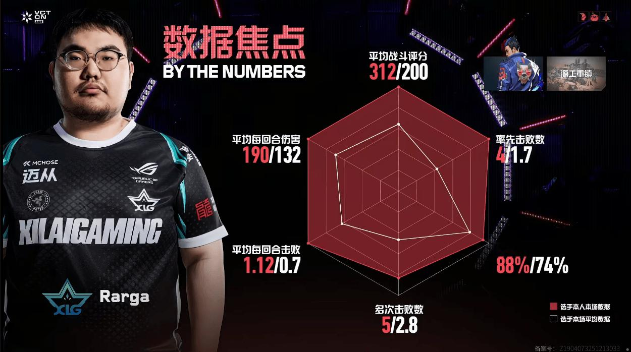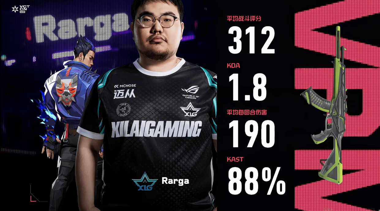 虎扑02月08日讯在刚刚结束的XLG对阵BLG的BO5比赛中,312战斗评分190回合均伤,Rarga斩获XLG对阵BLG图二MVP
