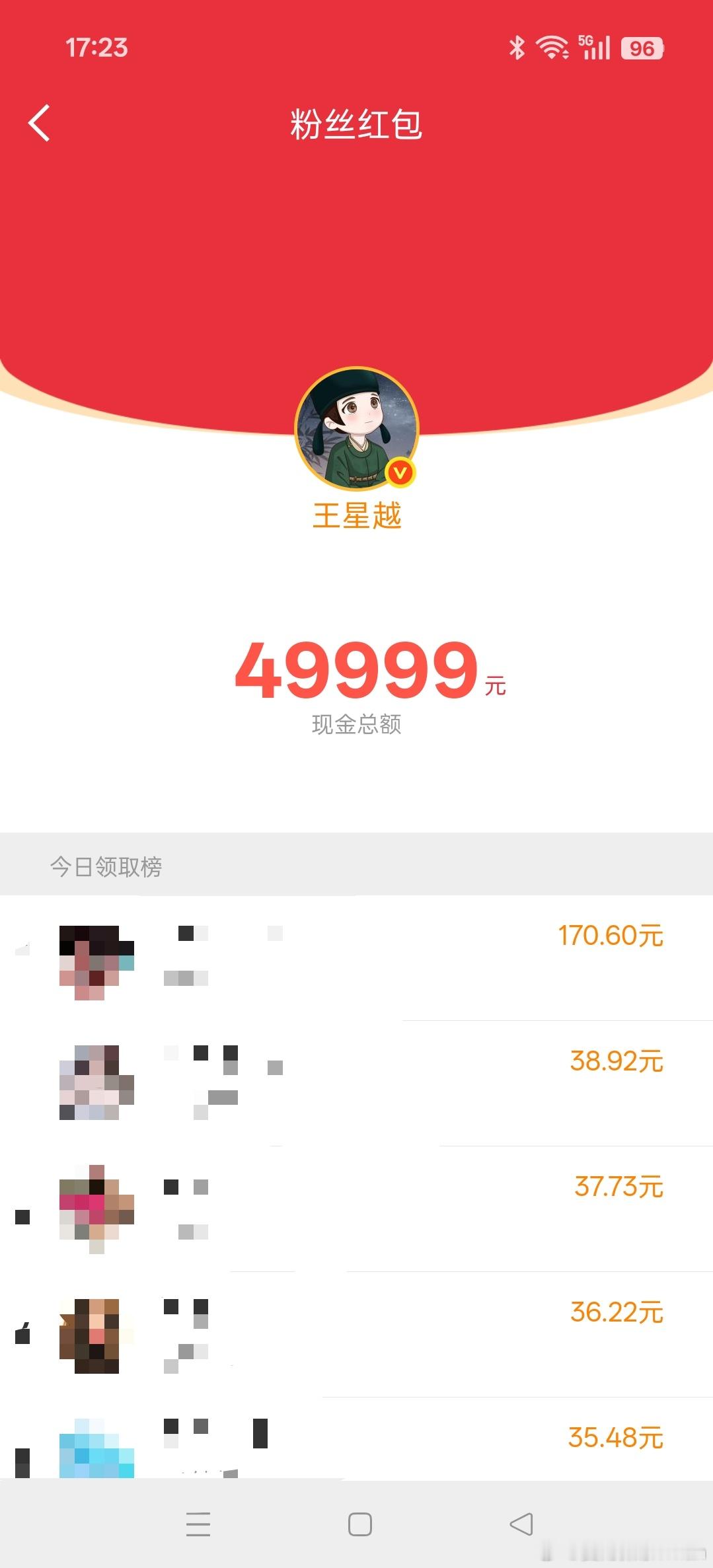 刷微博,第一时间看到王星越发红包,赶紧点进去了,收到了10块的红包,以为很多了,