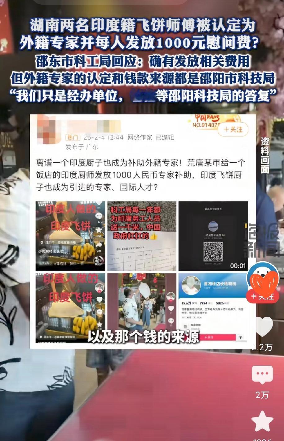 前有”菲律宾博士”,后有“印度飞饼专家”,2026年,邵阳市这座湘中历史名城再一次火爆全网! 印度飞饼哥能成专家?邵阳本地的糖油粑粑大娘,烤红薯师傅,炒粉哥纷纷表示,他们也想申请成为专家,请科技局一视同仁,也给他们一个机会,一起为邵阳市的高层次人才建设添砖加瓦!成为振兴邵阳经济的高层次人才!请大家支持他们的申请!