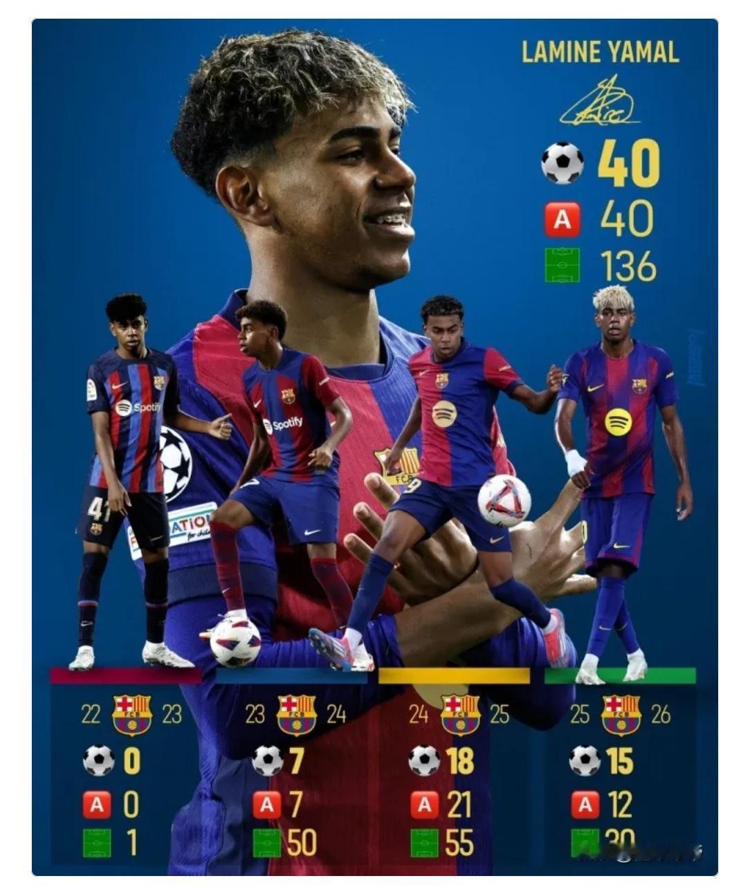 虽然同样是18岁,亚马尔的进球数和助攻数远远胜出了18岁的梅西,但我依然看不到亚马尔能够达到梅西的高度。 18岁的亚马尔已经为巴萨打进了40球和40助攻。而同期的梅西只进了不到20球。看似亚马尔完胜。其实不然,原因如下。 亚马尔在17/18岁的时候,他就是巴萨的大腿,资源全部倾斜给了他,所以他的数据非常好看。 而梅西在17-18岁的时候,是2005/2006年,这个时候的大腿是罗纳尔迪尼奥,在他的带领下,巴萨如日中天,并且还有一个进球如麻的埃托奥,梅西只是作为未来之星培养,打打替补和轮换,上场时间都不能保证,所以进球数据也不好看。 当然亚马尔也是天赋型球员,但是,从目前来看,他的天赋相比大罗和梅西来说,还不可同日而语。 大罗,梅西,马拉多纳,是足球世界里可遇不可求的超级巨星。