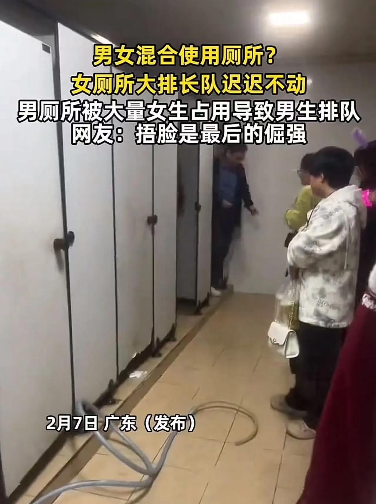 女厕所排长队迟迟不动,大量女生占用男厕所,导致男生不敢进!网友:“如果我小便憋不住,我就在小便池解决,这样旁边都是女的,我算不算裸露下体?女生进男厕没管的,男人进女厕就是变态。这是为啥?” 网传视频显示,女厕所外,队伍蜿蜒如长龙,少则二三十人,多则五六十人,个个焦躁不安、原地踱步。有人实在憋不住了,一咬牙,带头冲进了隔壁空荡荡的男厕所。 紧接着,一群女人蜂拥而入,直接站在男厕小便池前排队等蹲坑!原本属于男生的“快速通道”,瞬间变成了女士们的“临时候诊区”。 这时,一位男生走进来准备小便,推开门一看,傻眼了:眼前全是背对着他的女性,有的在补妆,有的低头刷手机,有的还在和同伴聊天。 他愣在门口,进也不是,退也不是,脸涨得通红,最后只能默默转身离开,边走边嘀咕:“这还是男厕所吗?” 更尴尬的是,有些男生实在憋不住,硬着头皮进去,结果刚站到小便池前,就被周围女生的目光“钉”在原地——明明是合法使用自己的厕所,却像做了什么见不得人的事。如果换成男的排队去女厕,肯定罪大恶极吧? 此事迅速引爆网络,评论区吵成一片: “男厕外面有小便池,女生去男厕不觉得尴尬吗?女生有隐私,男生难道没有隐私了吗?女生去男厕,是不是也侵犯了男生的隐私了?” “上个厕所麻利的上完,男生1分钟左右就ok了,女生也就是个3~5分钟,纯粹是网络和镜子的问题,把女厕所的镜子撤掉,网络也断掉,排队问题就能彻底解决了!” “这种情况不用上纲上线,首先男厕所有小便池和大便池,而女厕所就一种肯定会有拥挤的现象。” “根本问题不是谁进谁的厕所,而是公共设施规划严重失衡!为什么女厕永远不够用?因为设计时只按‘男女1:1’配比,却忽略了生理结构和如厕时间的巨大差异。” 更有网友犀利指出:“如果今天是一群男生冲进女厕所排队,早就被骂‘变态’‘性骚扰’了,搞不好还要报警。可女生进男厕,却被说成‘情有可原’——这双标,未免太明显。” 其实,类似事件早已不是第一次。从音乐节到高铁站,从景区到大学校园,“女厕排长龙、男厕空荡荡”几乎成了公共空间的常态。而解决方案,不该是让男生“委屈求全”,也不该纵容“谁急谁优先”的丛林逻辑。 当“女生进男厕”被默认为“无奈之举”,而“男生进女厕”直接等同于“犯罪”,暴露的不是性别对立,而是公共治理的懒政与性别盲区。 真正的文明,不是靠牺牲某一性别的尊严来“应急”,而是从源头解决问题: 1、女厕蹲位数量应至少为男厕的2-3倍; 2、推广“无性别卫生间”+独立小便间; 3、 在人流密集场所设置临时移动厕所。 否则,今天你默许女生占用男厕,明天就可能默许老人抢占母婴室、游客躺卧消防通道——所有“情有可原”的越界,最终都会侵蚀公共秩序的底线。 别再用“她只是想上厕所”来合理化一切。 尊重,从来不是单方面的忍让,而是制度对所有人需求的平等看见。