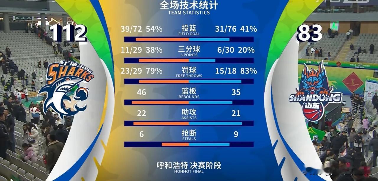上海久事男篮挺进第二届俱乐部杯决赛,坐等山西男篮与浙江广厦胜者! 今晚,这场半决赛比赛悬念不大。首节上海28-19山东,次节双方战成24平。第三节上海32-21山东,第四节上海28-19。全场比赛结束,上海男篮112-83战胜山东男篮。 这场比赛,洛夫顿和陶汉林各拿到21分和16分的全队最高分。怀特塞德珀塞尔分别拿到最高的11和7个篮板球。古德温和谢智杰分别拿送出最多的5次和7次助攻。 上海男篮赢得比赛,一是篮板46-35净赢山东11个。二是关键球员发挥出色。弗格出场13分钟拿到20分,无疑是功臣。陶汉林8中6拿到16分,成为山东男篮效率最高的球员。三是投篮命中率54%高于山东13个百分点。其中三分球29中11,高出山东18个百分点。山东男篮军无斗志,球员想回家过年的心思太重。