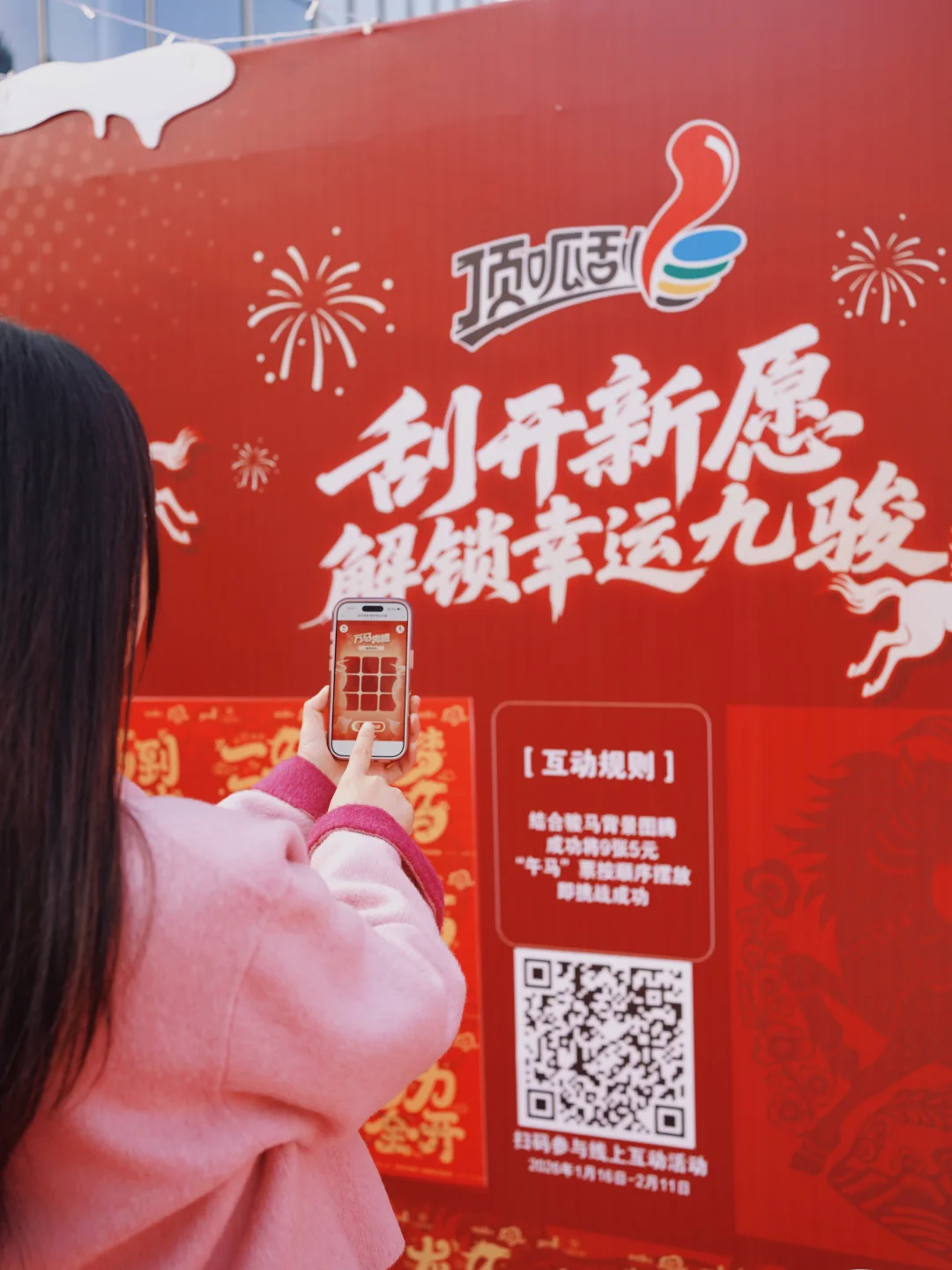 没想到,这里不光好拍📷,更好玩!入口处领到一张“好运卡”💳,我们瞬间变成了闯关玩家——现场扫码参与“解锁幸运九骏”线上活动,很有年味也很有意思;投壶小游戏比想象中更有趣;还有钓鱼🎣小游戏让我们在玩的时候,也自然了解👀到理性消费的小知识。