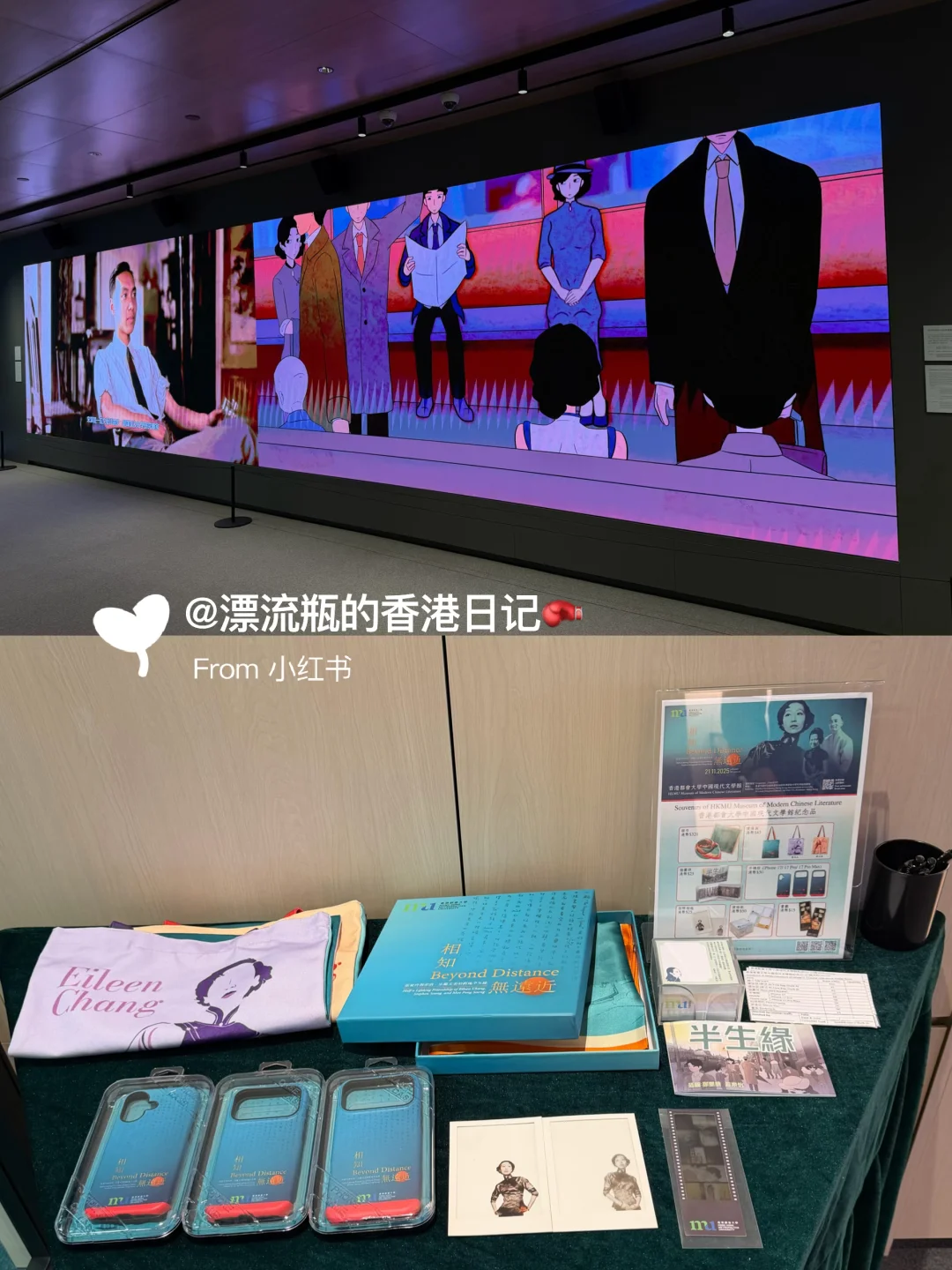 很多张爱玲和宋氏夫妇的著作书籍📚可以阅读。投影播放捐赠仪式影片。旁边桌上还摆着纪念品周边,喜欢的可以下单