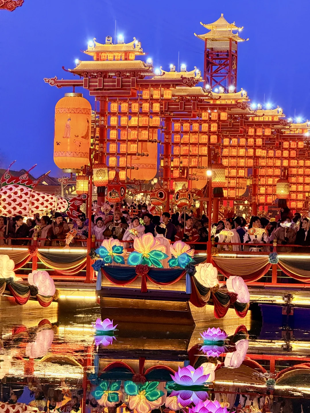 春节拒绝特种兵打卡🙅♀️京津冀懒人直接冲唐山河头老街,慢逛摆烂太治愈~ 开园14:00-22:30,21:30停止检票,睡到自然醒再出发完全不赶趟✨ 懒人路线:圆樽码头进→西市广场→惠丰湖三岛→东岸→水上市集→大唐之山剧场看唐王东征→西岸→返程 经典必看节目时间表 边走边看演出不赶路,唐王东征19:00必蹲,记得提前占座!花魁巡游、大唐不倒翁、傩戏轮番上演,随手拍都是中式年味大片🏮 暖心小tips:多穿厚衣服!景区暖心驿站有免费热水热饮暖贴,冷了就去歇脚,佛系逛gai才是春节正确打开方式~