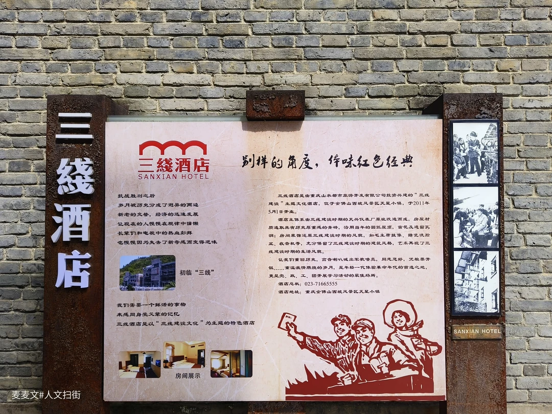 同时,一部分员工宿舍旧址被改造成了三线酒店,该酒店建筑面积近5000平方米,拥有117间客房。房屋采用具有历史厚重感的青砖建造,沿用了当年的圆弧屋顶、窗花及遗留孔洞,让游客仿佛穿越回了那个火红的年代。