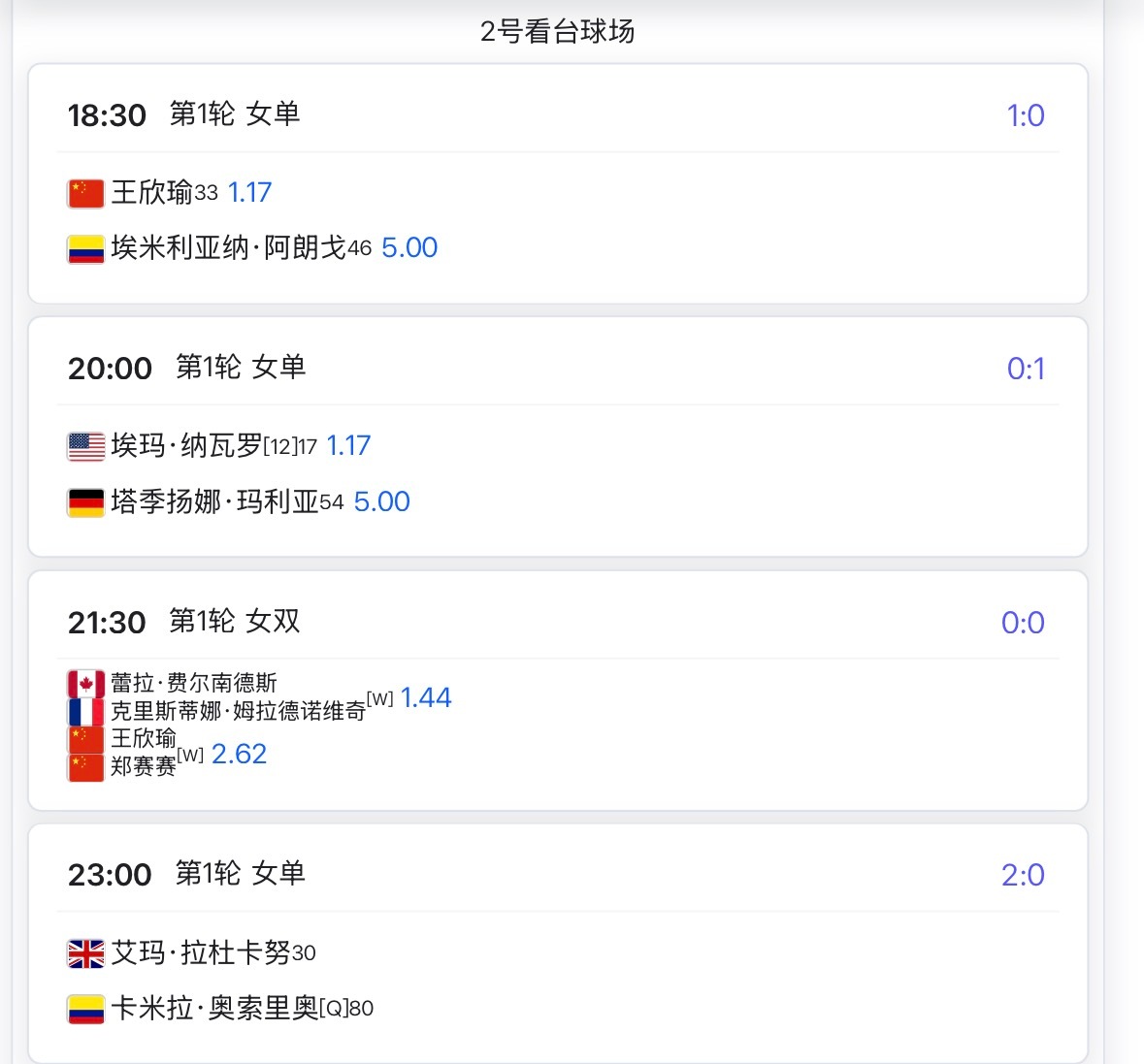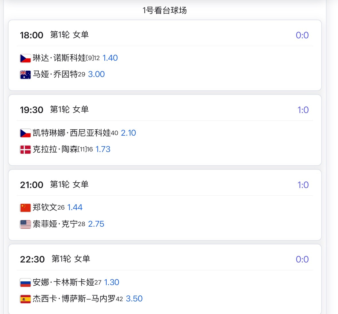 明日多哈赛程出炉,王欣瑜2号球场第一场,郑钦文复出首秀1号球场第三场!期待两位金