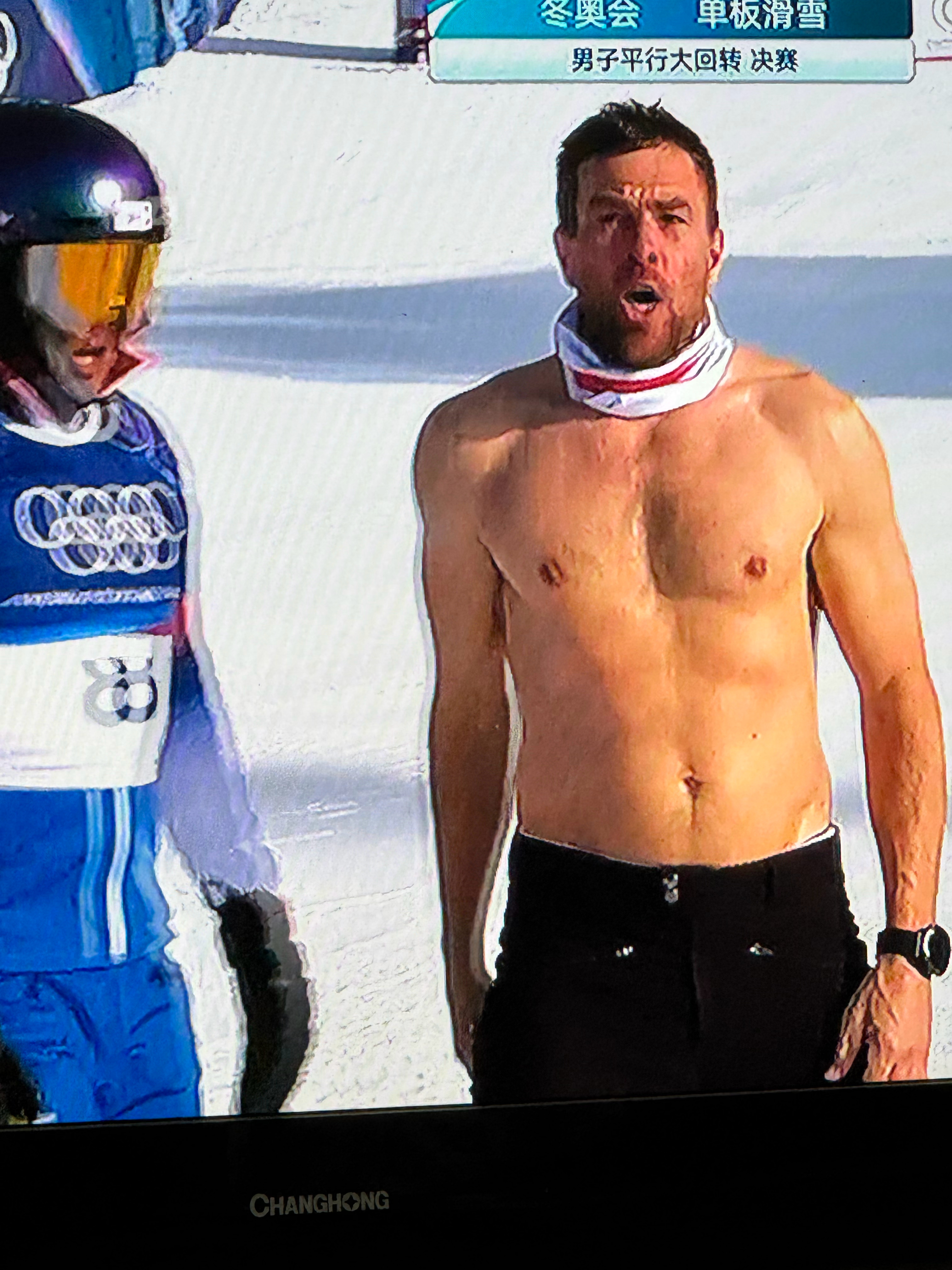 这个奥地利大叔本杰明·卡尔确实很有实力!技术特别好,红道相对难滑的情况下他每一轮都能hold住,卫冕金牌之后激动脱衣庆祝。🏂🥇