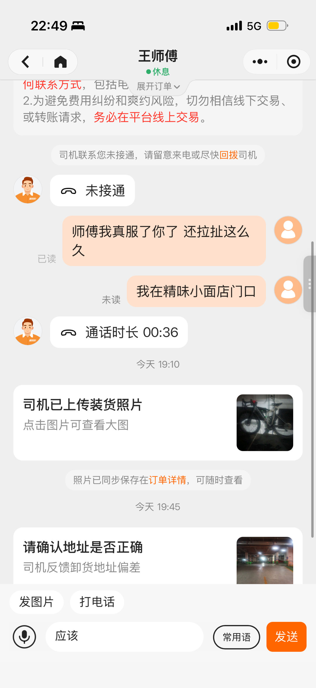 今天真的太狼狈了,又惨遭大雨 包包也打湿透了 特别脏 剩18公里依旧货拉拉 。开始平台定价64块钱 有个王师傅离我400米给我弹了个窗 说95可以 我砍价到80 王师傅:100 我加价到85 王师傅:105 我加价到88(我心想这大过年的吉利数字 赶紧同意)王师傅:100 我改价到90 取消用他 我说我不信等不到别的师傅了 90等到了个离我80公里的 算了 最后100元我让王师傅赶紧来接我 但是天黑骑那条路真的挺危险的 下着雨还全是大货车 而且为什么我一下定决心久下雨了?我不是雨神。从成都骑回宜宾也算是成功了四分之三吧 虽然叫了两次货拉拉 有劲的时候骑还是挺好玩的 后悔没拍五老哥!路上遇到了很多有意思的人