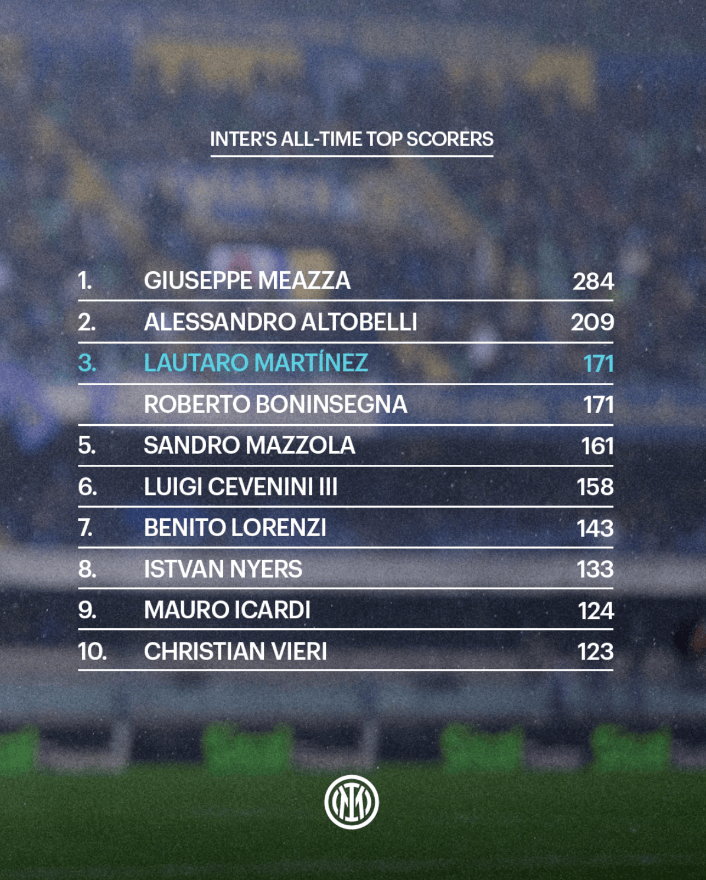 171球,劳塔罗达成国米射手榜第三成就社媒庆祝:继续前进