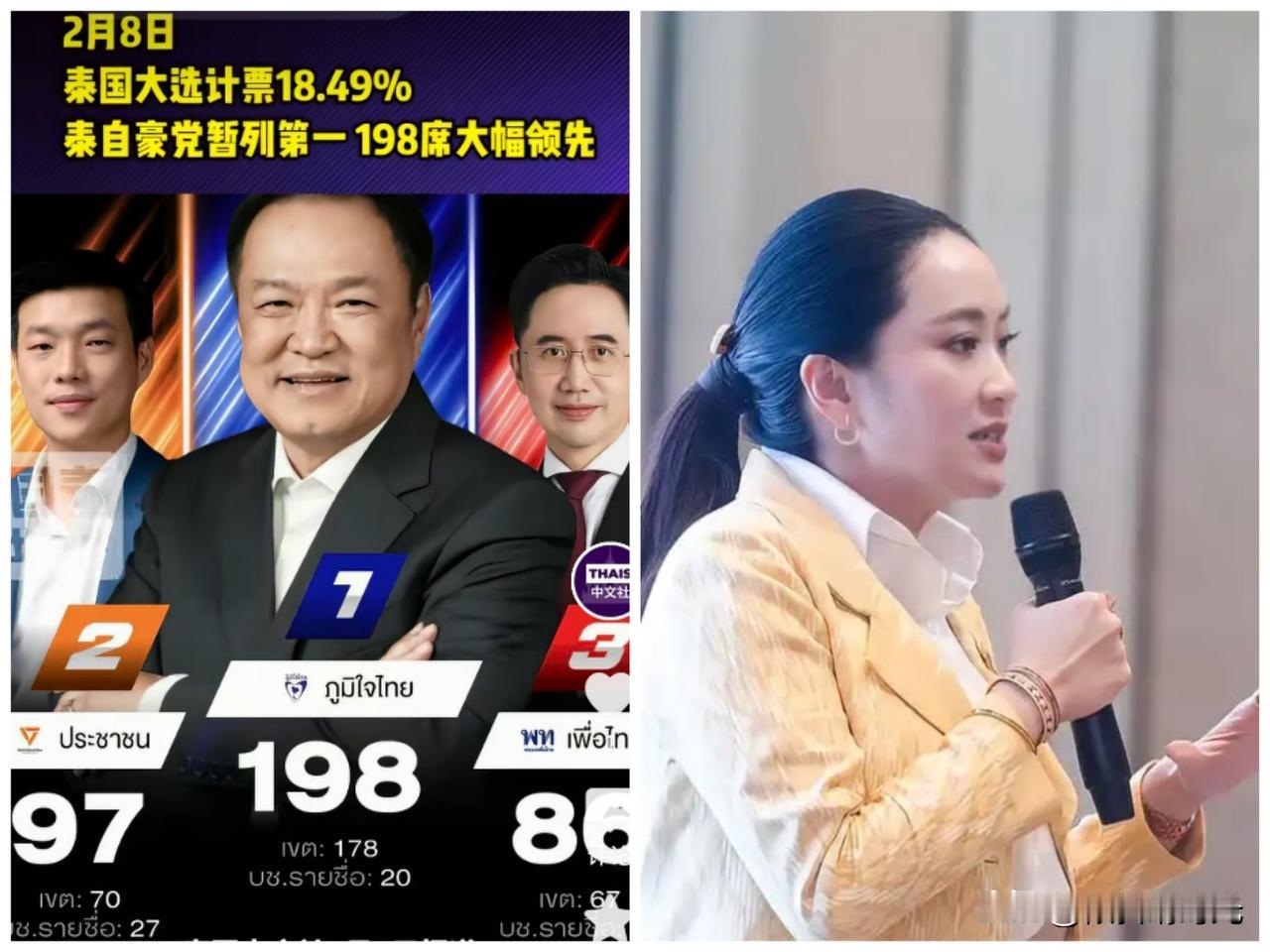 果然不出所料,泰国民众还是不出意外的抛弃了泰国前总理他信以及前总理佩通坦。昨天晚上最新投票结果显示,阿努廷领导的泰自豪党获得了198席,人民党纳塔蓬领导的人民党获得了97席,为泰党育查南获得了86席,虽然才进行了不到20%,但是政治意图已经比较明显,看来佩通坦通话门事件,还有他信入狱服刑等事件虽然已经过去,但是影响并未消除,这恐怕是西那瓦家族铁杆支持者开始不断减少的原因之一吧。