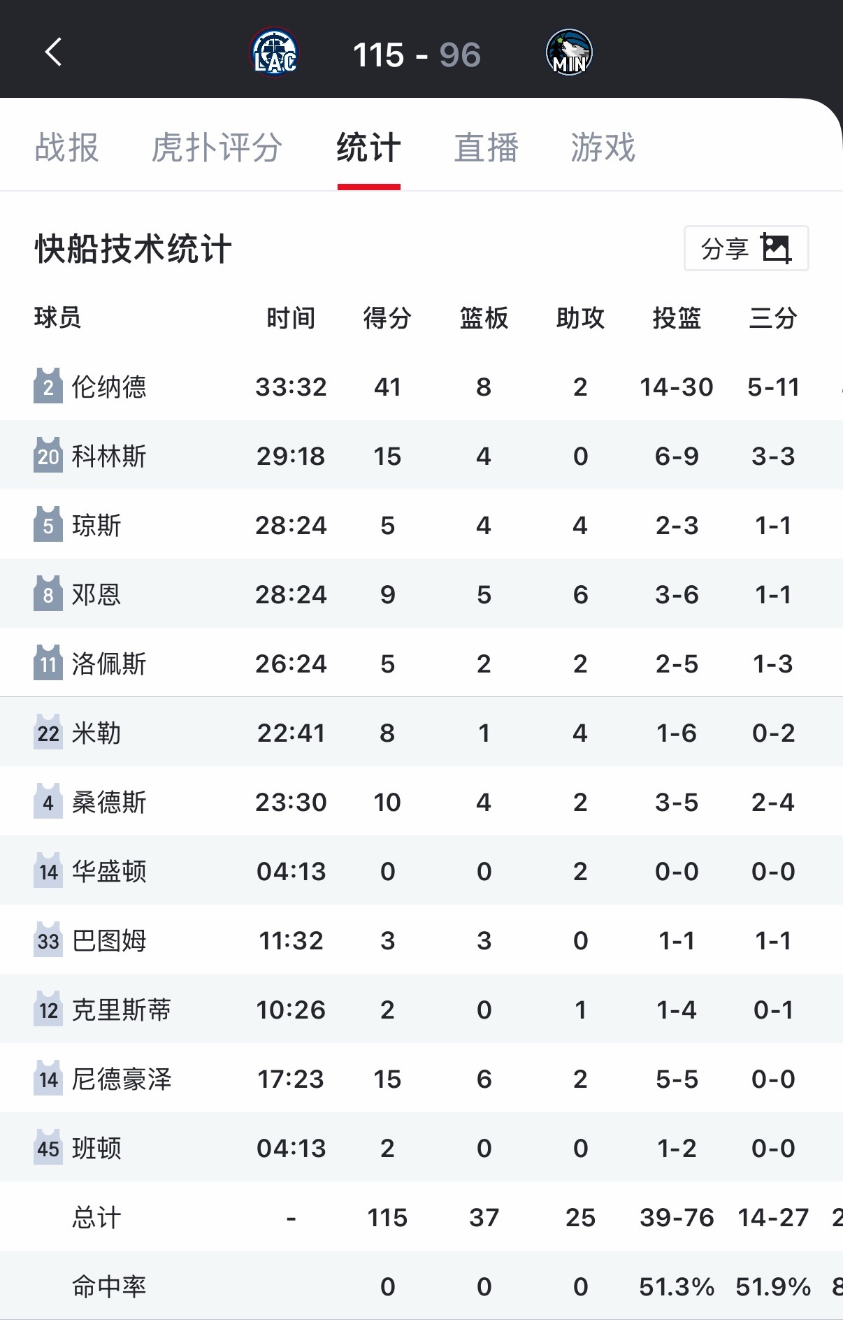 卡子哥抡冒烟了,快船客场大胜森林狼!继续北伐!