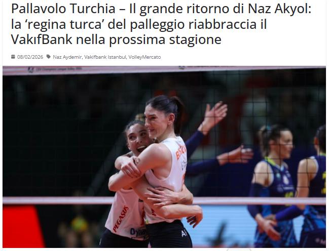 功勋"老将"回家!赵勇、杨昊看好了:朱婷前土超瓦基弗银行队友、现王媛媛加拉塔萨雷队友、今年将满 36 岁的功勋二传纳兹下赛季重返瓦基弗银行 意媒:纳兹·阿克约尔的盛大回归:"耳其女王"将于下赛季重返瓦基弗银行 国际排球界正在迎接一场浪漫且技术含量极高的回归。纳兹·艾代米尔·阿克约尔,现代历史上最成功、最具标志性的二传之一,将从 2026-27 赛季开始重返瓦基弗银行(届时将再次与接应塞尔维亚人蒂雅娜·博斯科维奇同队)。这一消息立即点燃了市场热情,也为这一过去曾称霸欧洲和世界的俱乐部开辟了新的篇章。目前,她正代表伊斯坦布尔加拉塔萨雷队征战本赛季,而运动员也在为许多人眼中"回家"的时刻做准备。 这位土耳其超级球星的签约对未来土耳其苏丹联赛的格局来说是一个意外的转折。正如媒体 voleybolunsesi 所写,将纳兹带回伊斯坦布尔队的决定旨在为一支希望重返国内外巅峰的阵容注入领导力和经验。 纳兹·阿克约尔并不是普通球员:她的职业生涯是一幅前所未有的成功马赛克拼图。她在伊萨奇巴希成长,从小就展现出非凡实力,连续赢得三次土耳其联赛冠军(2006-2008)。然而,她真正达到竞技巅峰却是在瓦基弗银行,成为历史上首位连续参加八次欧冠四强的球员。 她的荣誉名单上闪耀着九次土耳其国内冠军、四次欧冠冠军和三次世界俱乐部冠军,以及在最具声望的国际赛事中获得的"最佳二传"等奖项。 即使身披国家队战袍时,也是如此。纳兹在国家队留下了不可磨灭的印记,带领"网络苏丹"(昵称)队在欧洲锦标赛和奥运会上取得历史性的奖牌。她即将回归瓦基弗银行,承诺为主教练意大利人乔瓦尼·古德蒂的球队书写新的重要篇章。 来源:电子排球杂志