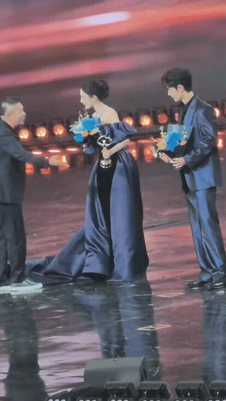 杨幂可能也没料到,一个细微的动作会被放大来看。 微博老总上台后,杨幂和肖战起初只是站着。老总的脚碰到她裙摆后,杨幂随即抬手示意中间位置,肖战也移步到两人之间。随后老总一直抬手,指向舞台另一侧。 这些动作很短暂。在公开场合,站位往往有安排,肢体动作有时是为了调整到预定位置。过度解读某个瞬间的举动,可能并没有太多实际意义。现场情况复杂,镜头外的安排观众并不清楚。
