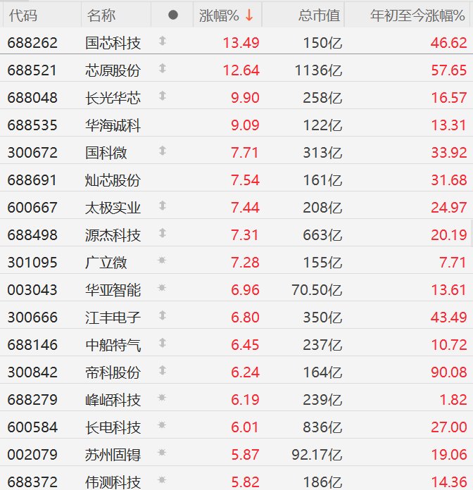格隆汇2月9日|A股市场半导体股集体走强,其中,国芯科技涨超13%,芯原股份涨超12%,长光华芯、华海诚科涨超9%,国科微、灿芯股份、太极实业、源杰科技、广立微涨超7%,华亚智能、江丰电子、中船特气、帝科股份、长电科技涨超6%,摩尔线程、天岳先进、兆易创新、寒武纪涨超5%。消息面上,受人工智能和计算机芯片在经济各个领域的广泛应用推动,半导体行业今年的收入将首次达到1万亿美元。