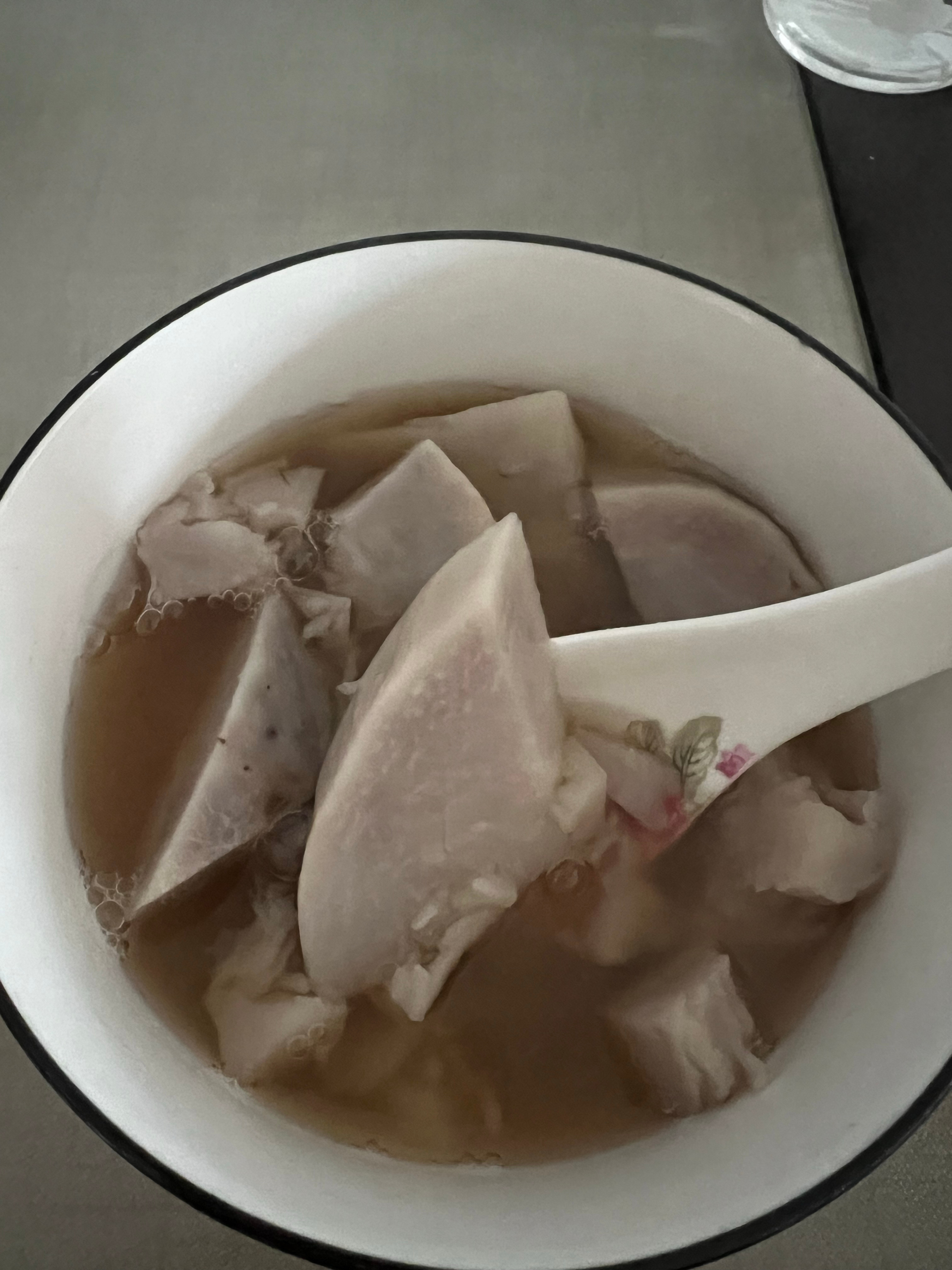 大亨周末给煮的芋头糖水~真好吃~放了红糖很粉的~过年回老家也要继续煮煮我们一家子