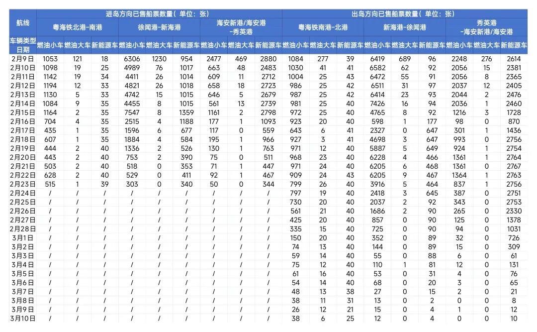 2月8日,琼州海峡客滚运输共发送航班302班次,运输旅客120017人次、车辆28905辆次。