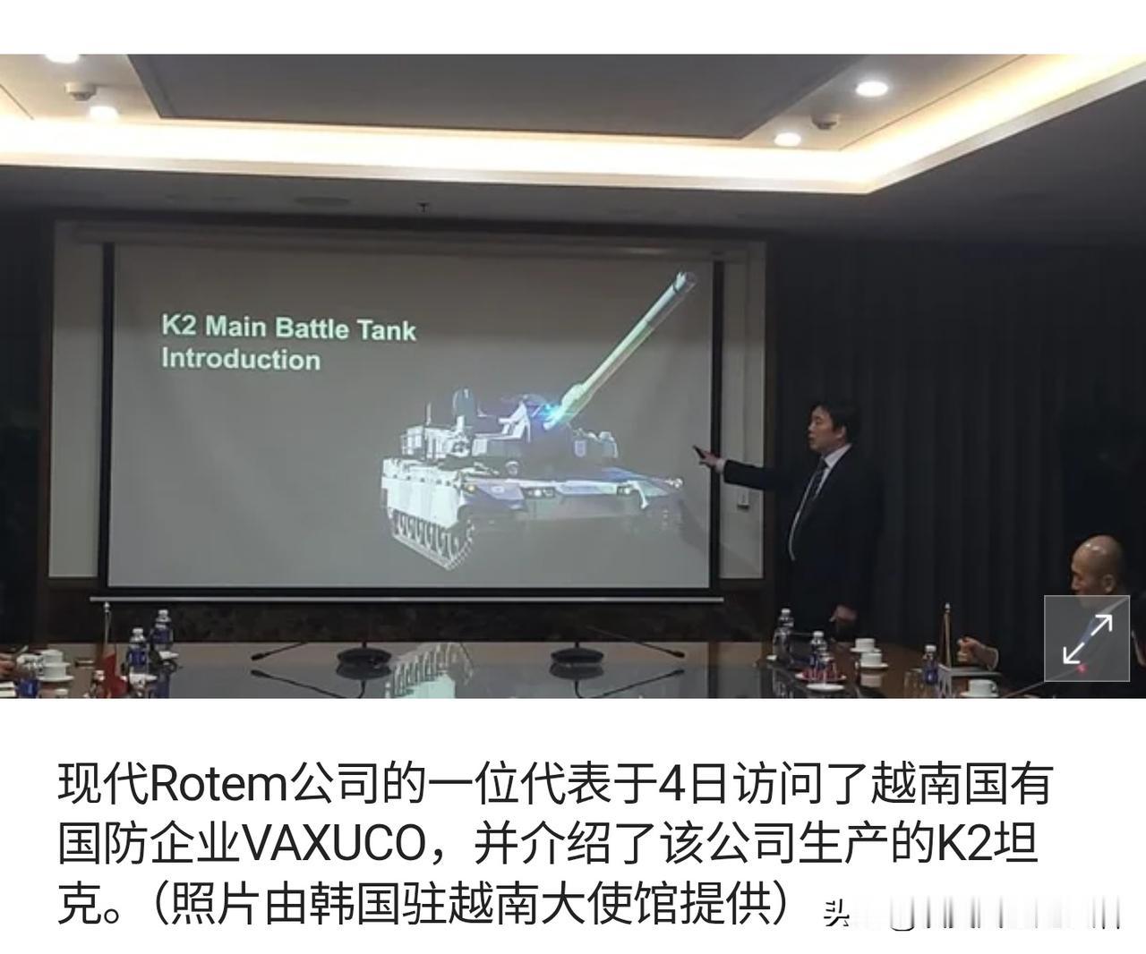 韩国向越南大力推销武器装备! 韩国的目标是对的,毕竟对越南来说,苏制武器过时了,中式武器不能买,美制武器太贵了,最终买韩国武器,应该是个不错的选择。但是根本矛盾有一点,就是越南什么武器都想要,但是没钱! 越南对包括K2主战坦克、K9自行火炮、FA50与KF21战斗机、K239天橆多管火箭系统等武器,几乎都存在装备需求。越南对此心知肚明,但是关键点就卡在没钱买武器的问题上。 韩国的策略是对的,向越南出售武器。是一个不错的蓝海市场。但是归根结底,韩国的武器装备不错,但是越南缺乏足够的资金去购买装备,这个大家都明白。目前越南的主力装备,几乎都是前苏联时期的装备,尤其是陆军的坦克,还是几十年前的T55坦克。海军方面的舰艇,也是总吨位比较小。空军方面主要是苏27和苏30战机,都已经使用了二三十年了,确实需要更换装备,但是因为越南方面的资金短缺,无法购买新的装备。 再说越南没有迫切提高军事能力的需要,毕竟越南邻国只有中国、老挝、柬埔寨,其中老挝和柬埔寨是没有任何威胁越南的能力。但是咱们中国与越南关系改善,至少未来几十年内,不可能爆发什么冲突,甚至关系还会更进一步的友好。所以说越南对提升武器装备的需求,非常不迫切。没有战争威胁,买那么多武器也没用。所以说越南的装备,一直是前苏联时期的装备为主。 不管怎么说,现在的韩国主动开拓越南市场是对的,说不定真的能卖出一些装备,能够得到不菲的利润。而且像这样的一个推销武器装备的展览会,就是一堆PPT介绍,也花不了多少钱,反正有枣没枣,打一竿子再说,这就是韩国的精明之处。 越南方面要购买武器装备,也是优先买世界强国的武器,因为可以在遇到危险的时候,得到强国的庇护。真的买了韩国的武器装备,一旦越南出现了危机局面,韩国也很难为越南提供某种保护和庇护。所以说韩国的推销努力,是可以钦佩的,但是最终越南能买的韩国装备,几乎不太可能多少。 最终就看双方的谈判了,比如买多少武器,就增加多少投资,这个可以谈。
