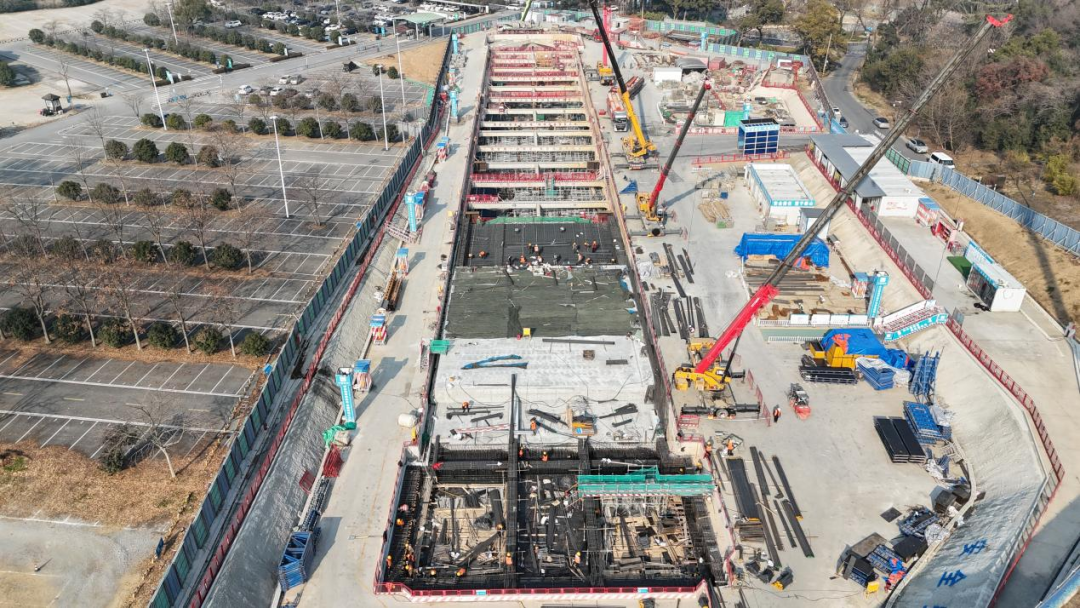 “赶在春节前浇筑完最后一块顶板,整个鼋头渚车站迎来封顶,节前的‘小目标’初步达成。”无锡地铁建设公司相关负责人表示。