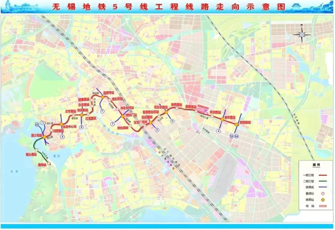 地铁5号线鼋头渚站为地下二层13米岛式车站,总长约196.6米,基坑深度17至18米,总建筑面积15226平方米。