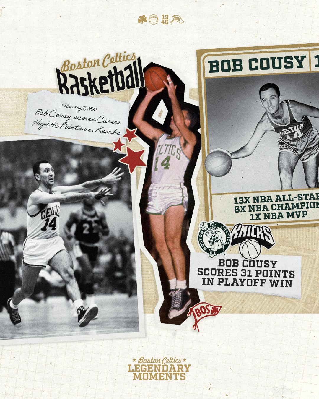TheHoudinioftheHardwoodhashiswaywiththe'50'sKnicks☘TodaywecelebrateBobCousyandhisprolificperformancesversusNewYorkthroughoutthe1950's