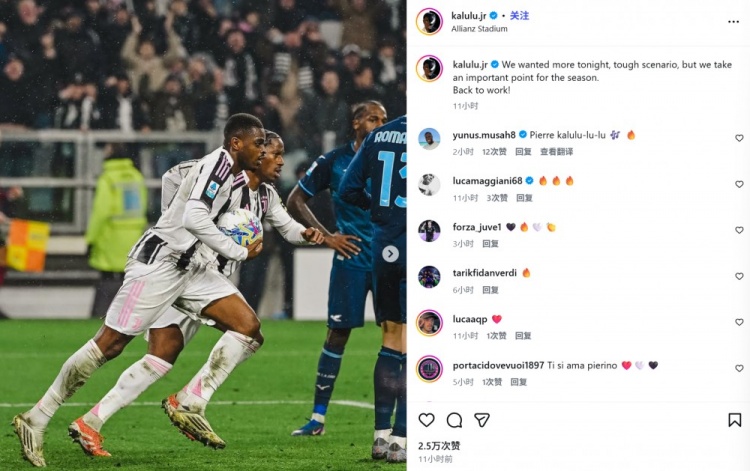 直播吧2月9日讯尤文在本轮意甲焦点战2-2战平拉齐奥,卡卢卢为球队打进绝平球。