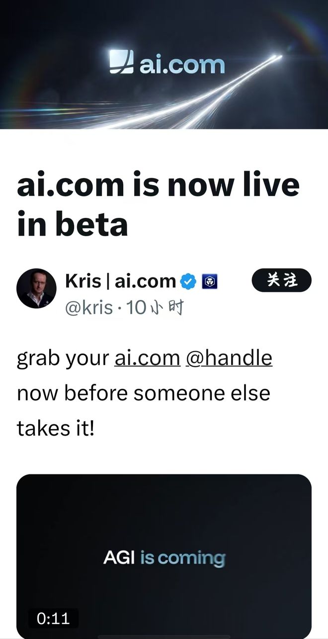 买家系加密货币巨头Crypto的创始人兼CEOKrisMarszalek。他表示这钱花得值:人工智能是未来20年最猛的技术浪潮,拿下这个域名不仅是为了避开市场同质化,更是为了长期的“广泛宣传品牌”,并计划将它打造成一个“个人AI助手”代理,帮用户发消息、刷应用甚至炒股。Kris计划在超级碗广告中推出“AI.com”。