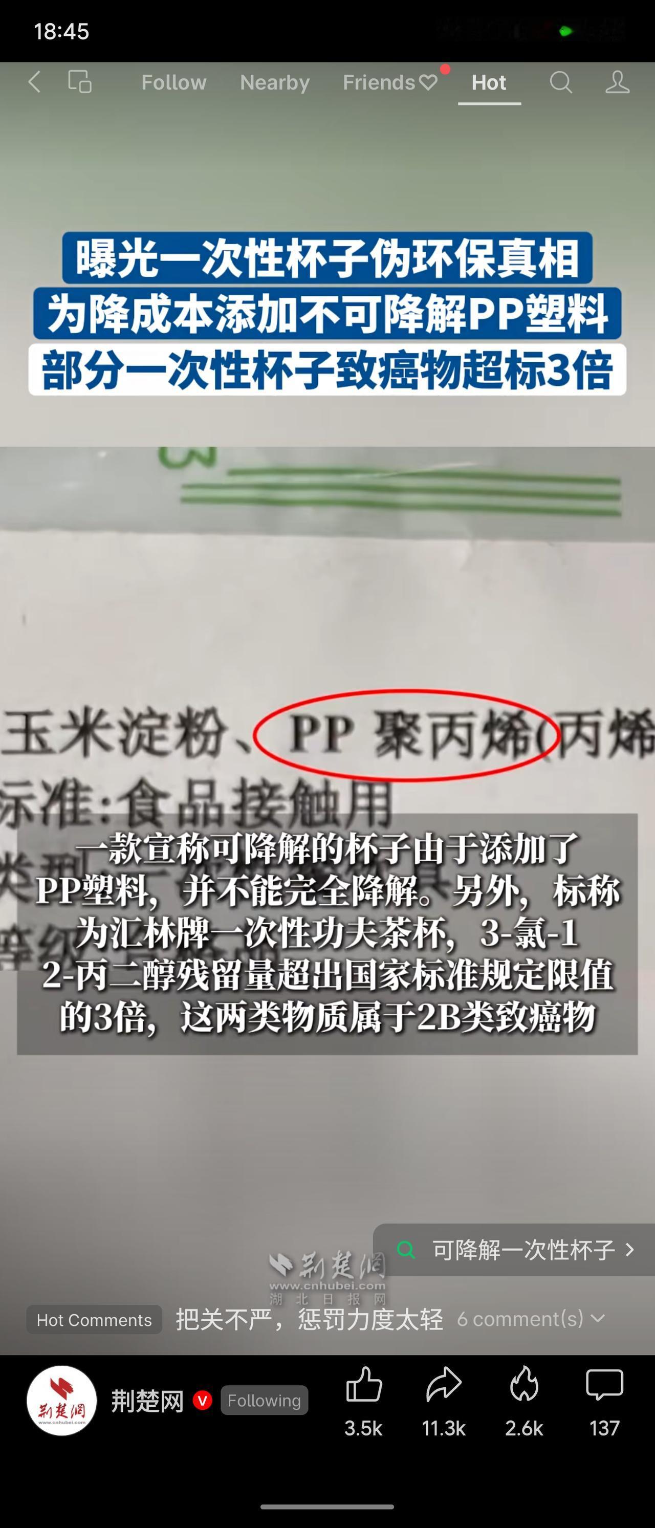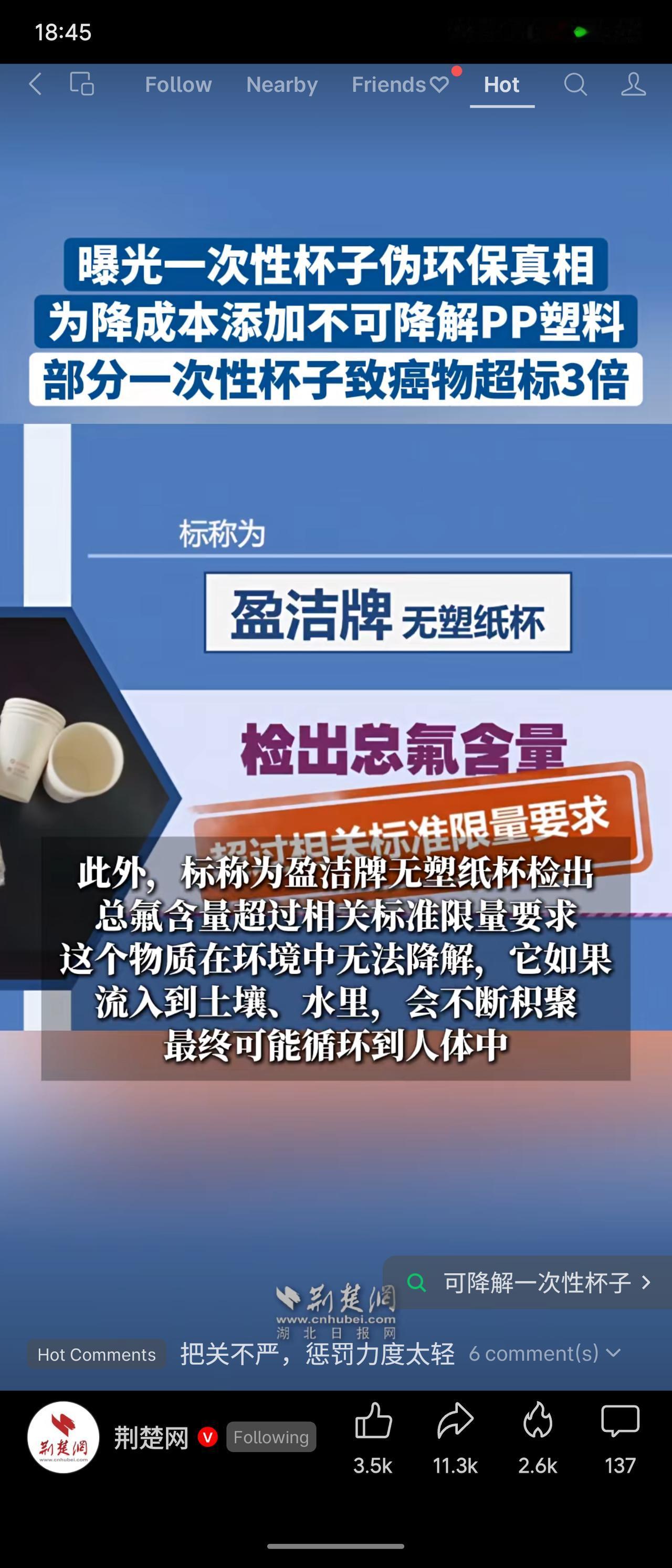上海市消保委测试发现,部分宣称“可降解”的一次性杯子实际添加了不可降解的PP塑料,涉嫌虚假环保宣传。更严重的是,有产品致癌物残留超标达3倍,存在健康风险。这暴露出市场监管漏洞与商家对消费者权益及环境责任的漠视。