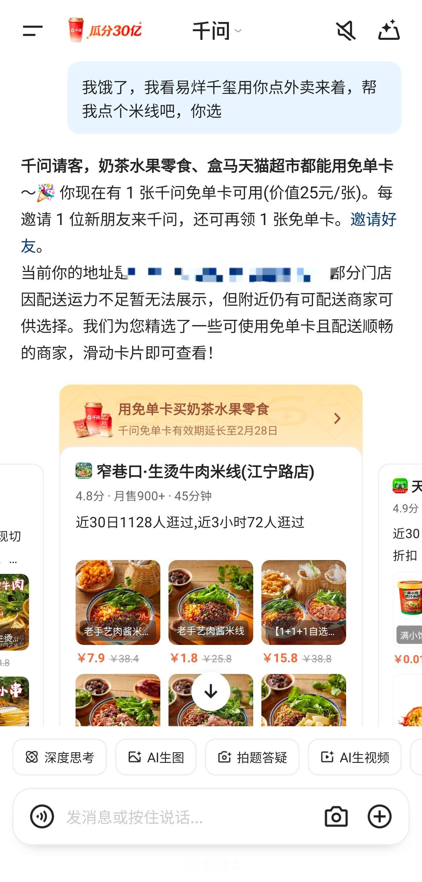 千家人AI购物实录救命!刷千玺动态居然刷出奶茶自由!试了试千问点单, AI秒推我最爱的厚芋泥波波奶茶!甚至不限品类,各种年货、日用品、水果也能买,实付0.01元也太香了叭!四舍五入也是被千玺宠到了!😁
