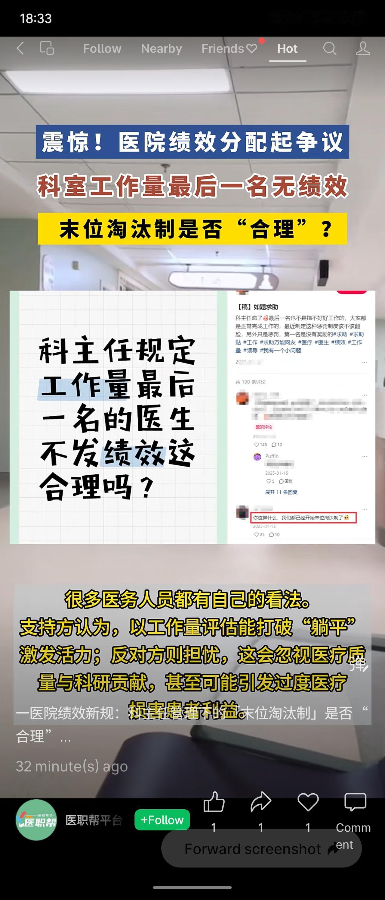 某医院科室规定工作量排名末位的员工不发放绩效,引发争议。该制度仅设惩罚而无奖励,被质疑类似“末位淘汰”,其合理性及是否符合劳动法规受到广泛讨论。此事折射出部分医疗单位绩效管理的简单化倾向。