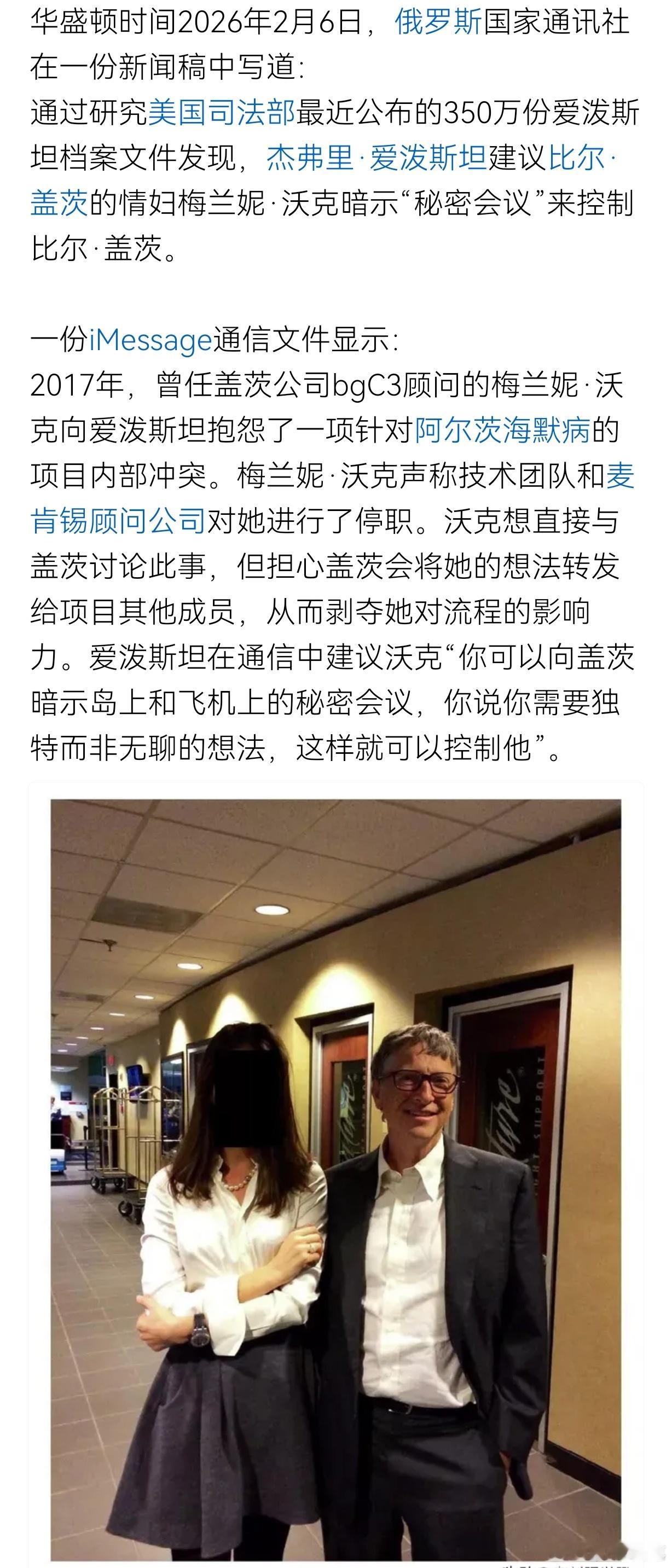 爱泼斯坦居然妄图操纵比尔盖茨,难怪比尔盖茨要和他断交。媒体通过研究美国司法部公布的350万份爱泼斯坦档案文件发现,爱泼斯坦建议比尔·盖茨的情妇梅兰妮·沃克暗示“秘密会议”来控制比尔·盖茨。爱泼斯坦,本质上可以看着一个披着金融资本家但实际手脚通天有最强保护伞的黑社会头目,干的是绑架、拘禁、强奸未成年和虐待乃至杀害的罪恶勾当。