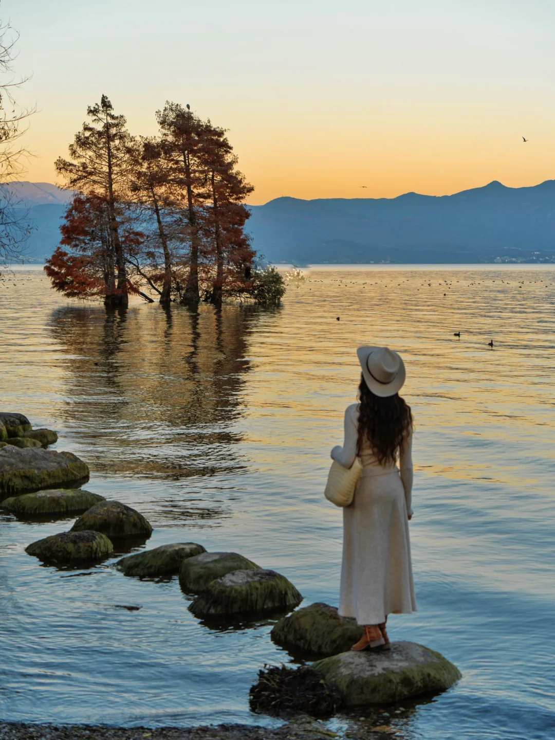 这棵之前要排队的树可以换个角度拍,坐在树前面的石头上,能拍到落日余晖