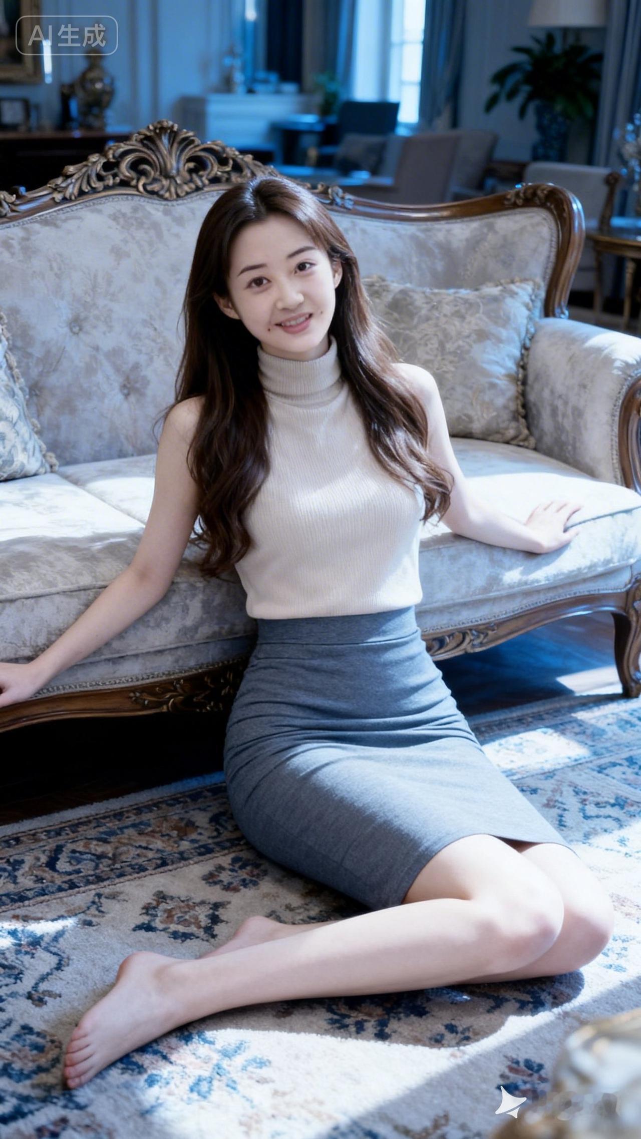 优雅复古风,米色高领毛衣搭配灰色铅笔裙,尽显女性魅力!