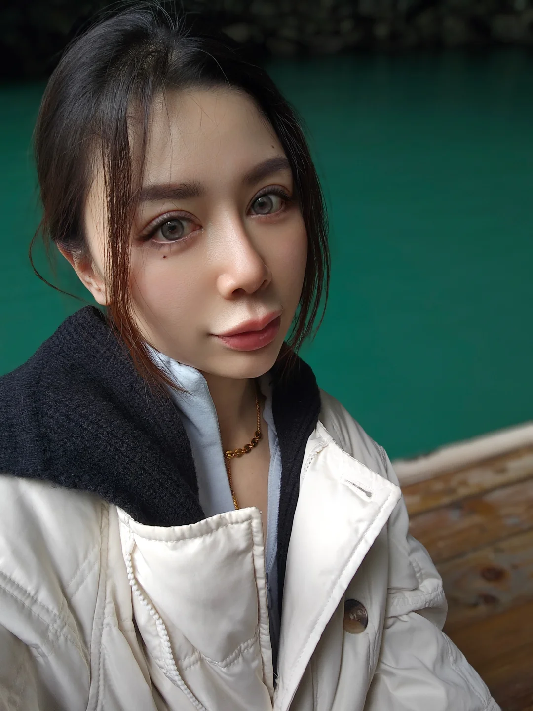温婉古典,绿衣美人,湖畔静思,如画美景。