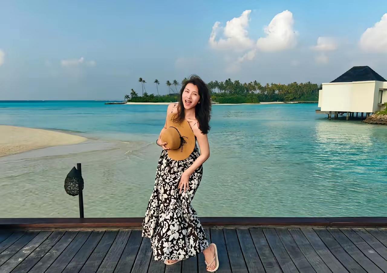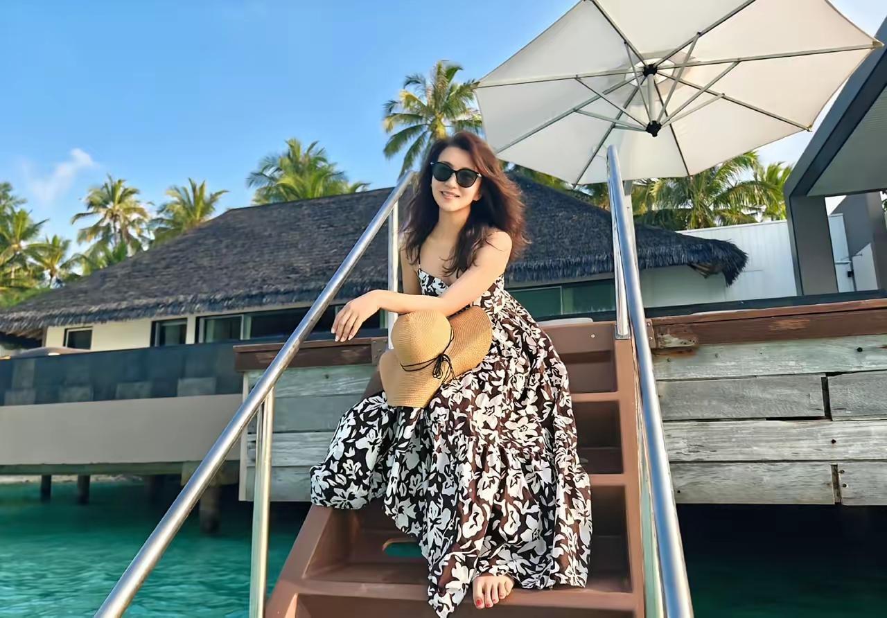 红衣逐浪,海风轻语碎金般的晨光铺满沙滩时,她立在粼粼波光里——红裙如跃动的