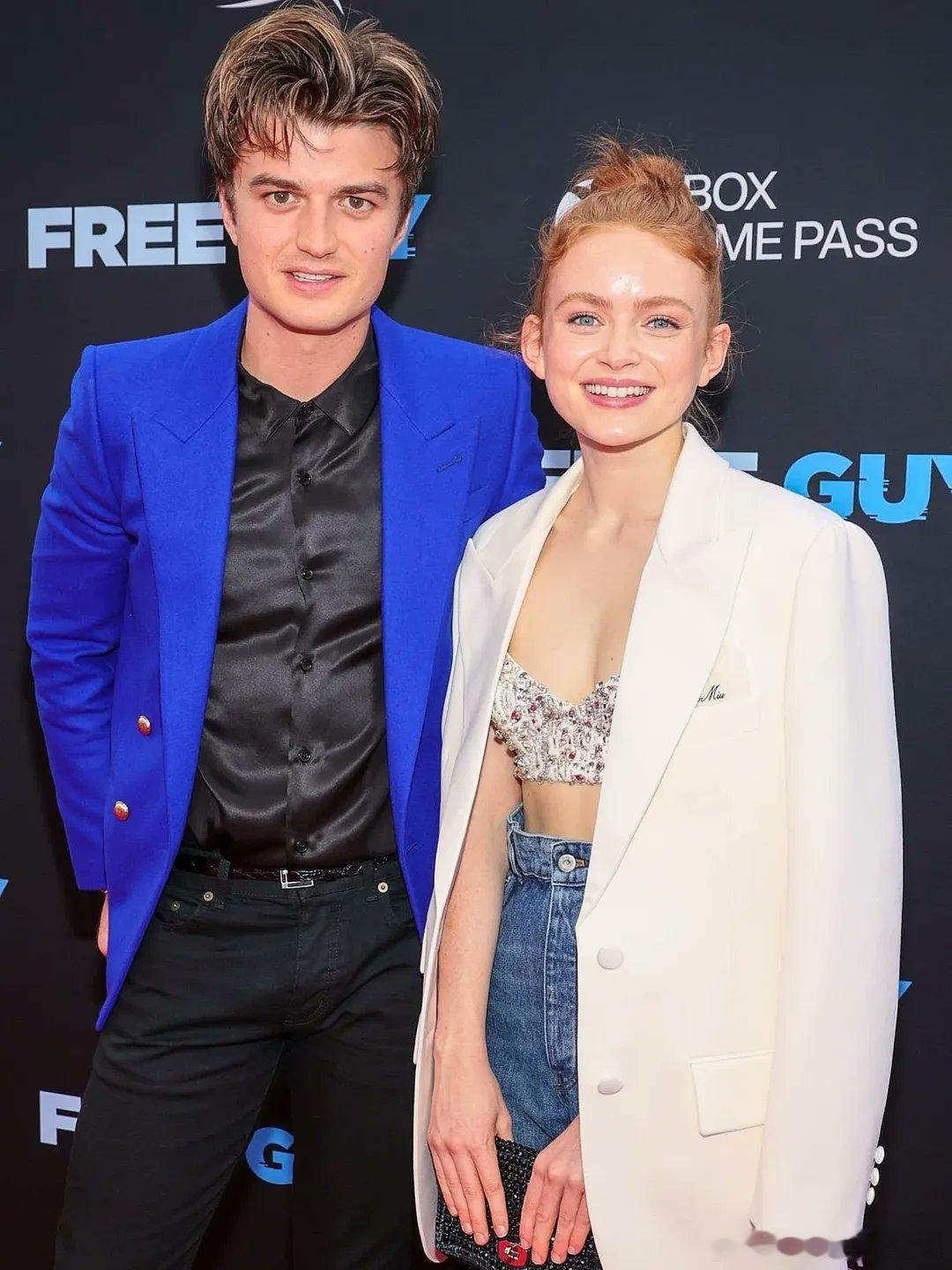 《失控玩家》上映时的萨迪·辛克和乔·基瑞,乔在影片里饰演现实世界的程序员,萨迪是来支持好友的