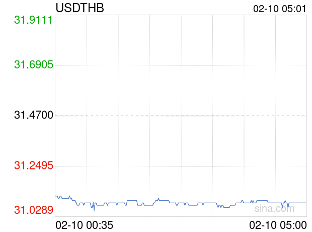 新浪外汇消息2026年02月10日,截至05时00分,外汇市场上美元兑泰铢汇率跌破1美元兑换31.0900泰铢。跌幅为-1.2075%