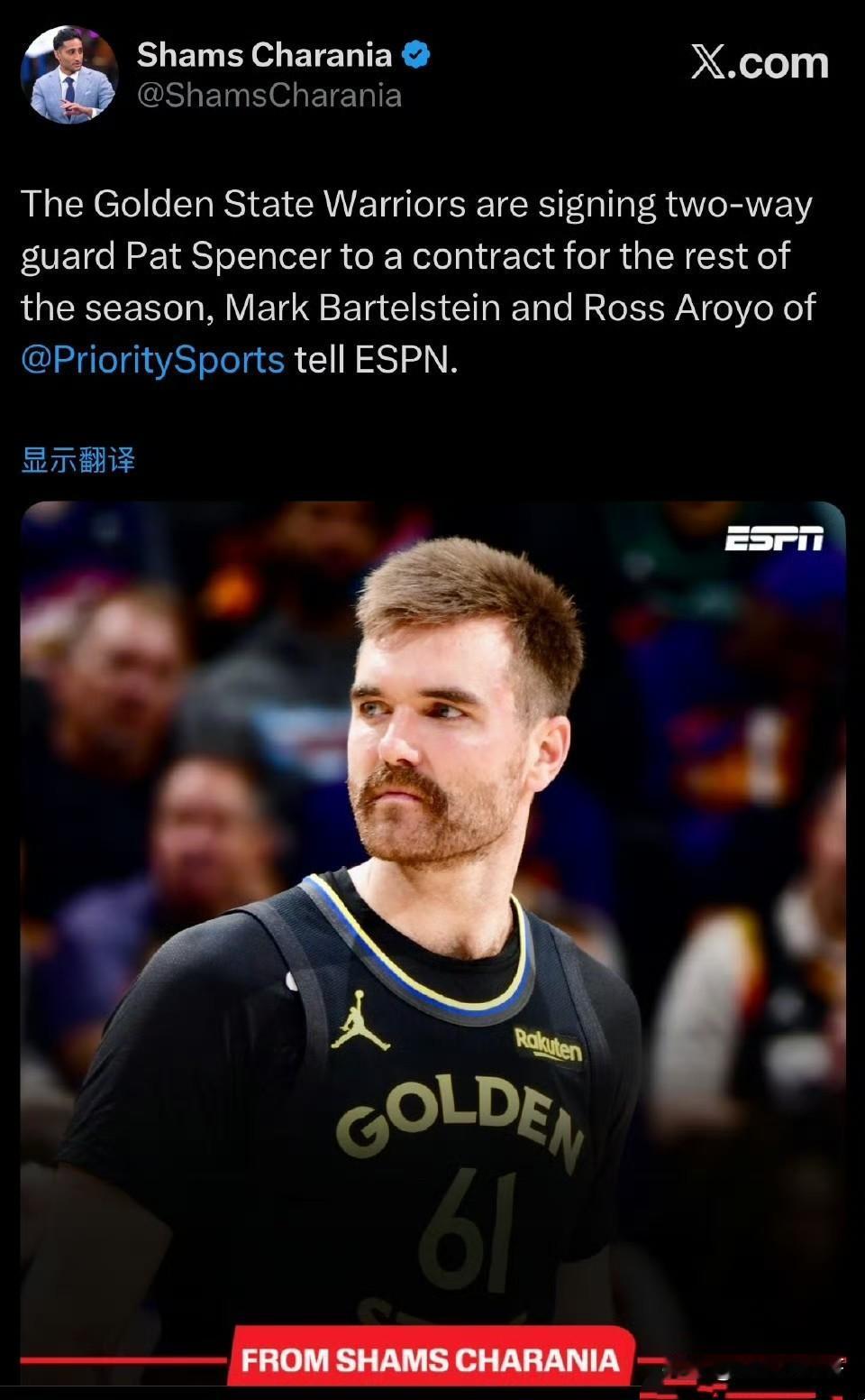 勇士转正斯潘塞,放弃朗佐-鲍尔!!! 根据记者Shams消息显示,勇士队已经将斯潘塞的合同转正,他真正的成为勇士队的一员悍将,不过在球队选择斯潘塞的同时,记者Stein表示,勇士可能会放弃对朗佐-鲍尔的追求。 斯潘塞靠着自己的努力表现赢得了一份NBA标准合同,他也能够和征战联盟多年的鲍尔进行竞争,如果再签鲍尔那勇士差不多都是后卫了吧。 鲍尔合同为2年2000万美元,每年1000万,合同的问题还好不算高,关键是伤病情况,如果鲍尔签约后无法为球队带来帮助,那么签下他半个赛季的意义就不大了。 目前勇士和掘金是唯二对鲍尔有过趣的球队,勇士如果放弃了,那么掘金竞争对手基本也没有了,掘金希望查看鲍尔的体检报告来确定签约事宜。春节与智己从容出行 金州勇士 勇士队 掘金 朗佐·鲍尔