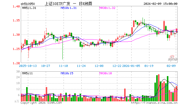 2月9日,上证50ETF广发(510950)涨1.23%,成交额1981.74万元。当日份额增加75.00万份,最新份额为9720.00万份,近20个交易日份额增加3225.00万份。最新资产净值计算值为1.28亿元。