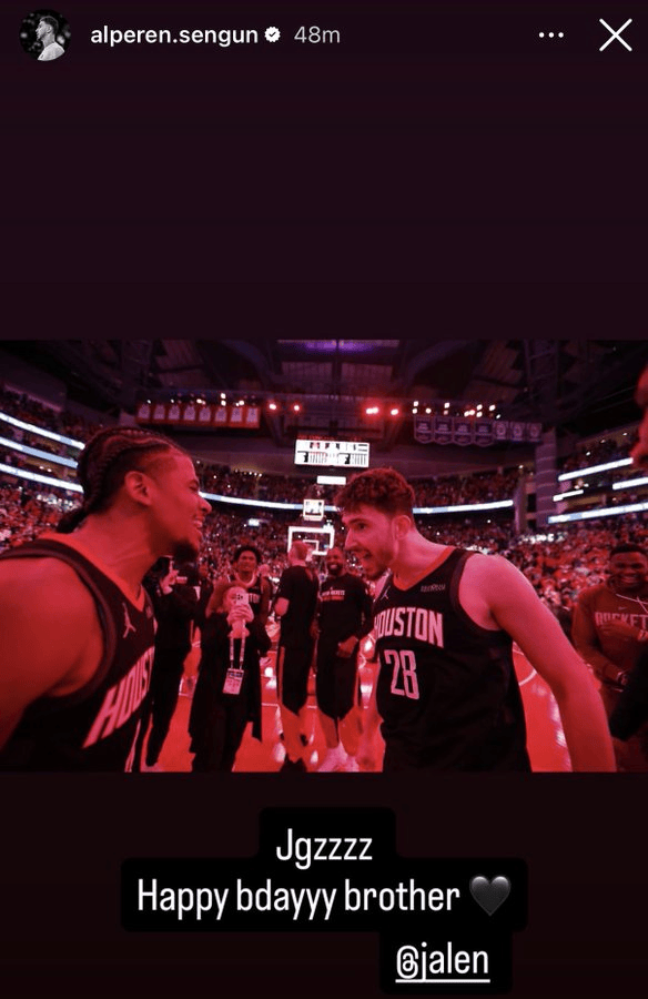 虎扑02月10日讯今日是杰伦-格林24岁的生日,前火箭队友申京更新ins,晒出与杰伦-格林的合照
