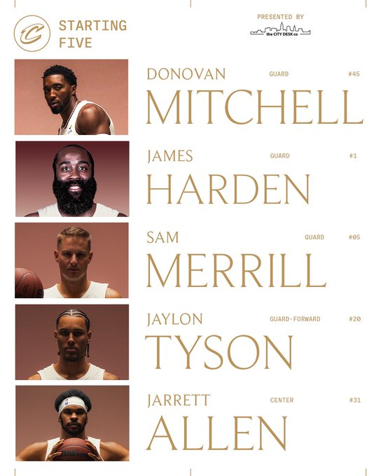 骑士战掘金首发:米切尔、哈登、梅里尔、泰森、阿伦