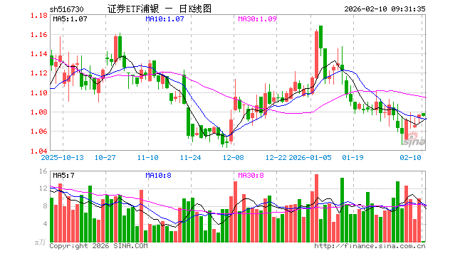 2月10日,证券ETF浦银(516730)开盘涨0.09%,报1.078元。证券ETF浦银(516730)重仓股方面,中信证券开盘涨0.00%,东方财富跌0.13%,国泰海通涨0.20%,华泰证券涨0.00%,广发证券涨0.18%,招商证券涨0.00%,东方证券涨0.00%,兴业证券跌0.14%,申万宏源涨0.00%,中金公司涨0.09%。