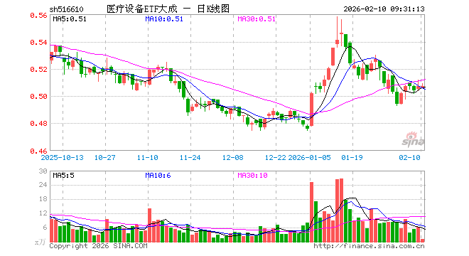 2月10日,医疗设备ETF大成(516610)开盘跌0.20%,报0.506元。医疗设备ETF大成(516610)重仓股方面,迈瑞医疗开盘跌0.01%,联影医疗跌0.05%,爱尔眼科跌0.37%,鱼跃医疗涨0.03%,新产业涨0.11%,爱美客跌0.57%,惠泰医疗涨1.09%,乐普医疗跌0.05%,福瑞医科涨0.06%,英科医疗跌0.29%。